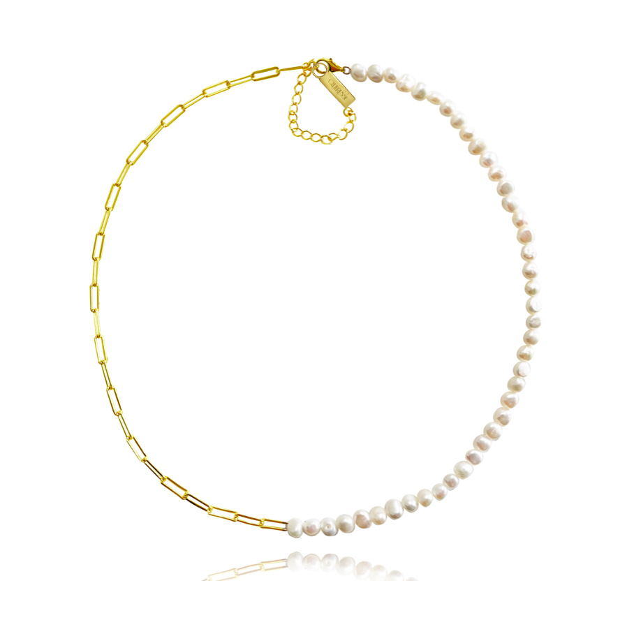 Modern fine jewellery with a balance of femininity and strength. Introducing Prairie Italian Silver Pearl Chain Necklace - a delicate and refine pearl chain neckpiece made to last a lifetime. This design features a half chain and half pearl necklace with a 5cm extension link for more flexible fitting. The chain is made of solid Italian silver with 2.5 microns of 18k gold plating, ethically made to last. The pearls are handpicked natural freshwater pearls with high lustre and smooth surface. A contemporary neckpiece for lovers of pearl and fine styles. Perfect for modern, chic, punk, coastal, smart casual, casual styles, and more. Hypoallergenic, nickel, cadmium and lead free.