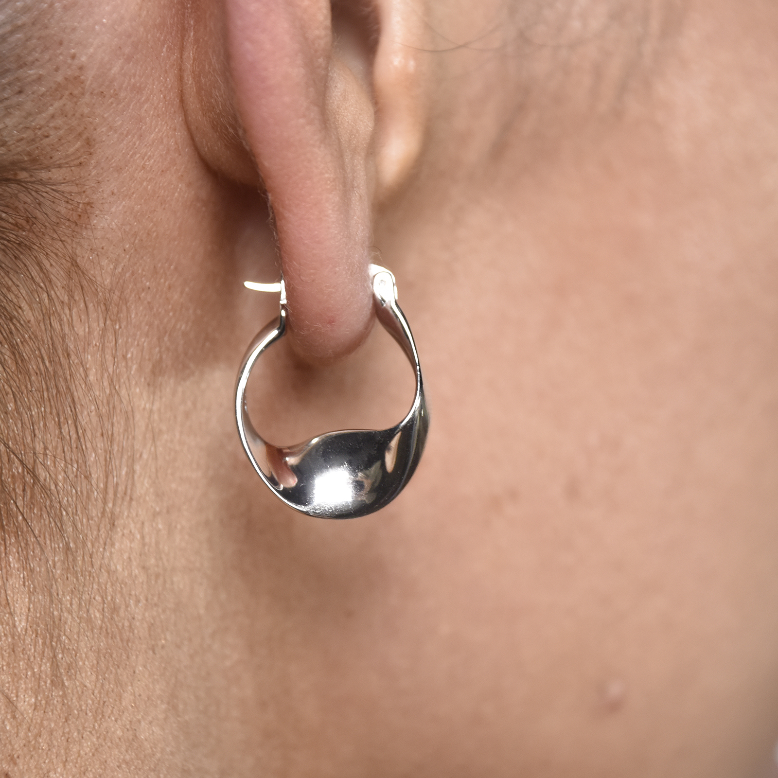 Embracing a modern twist and flow with an enchanting uniqueness. Introducing Raquel Flow Huggie Earrings (Silver) - an artsy style ear love for style hunters. This design features oval shaped huggie earrings with a flowing twist, smoothly polished to a reflective high shine. The subtle and smooth flow also embodies the modern femme spirit, celebrating softness with strength. The earrings are made in solid sterling silver with rhodium plating to ensure hypoallergenic wear, durability and an extra anti-tarnish protection. Perfect for modern, artsy, chic, feminine, earring layering, smart casual, casual, everyday styles and more. Hypoallergenic, nickel, cadmium and lead free.