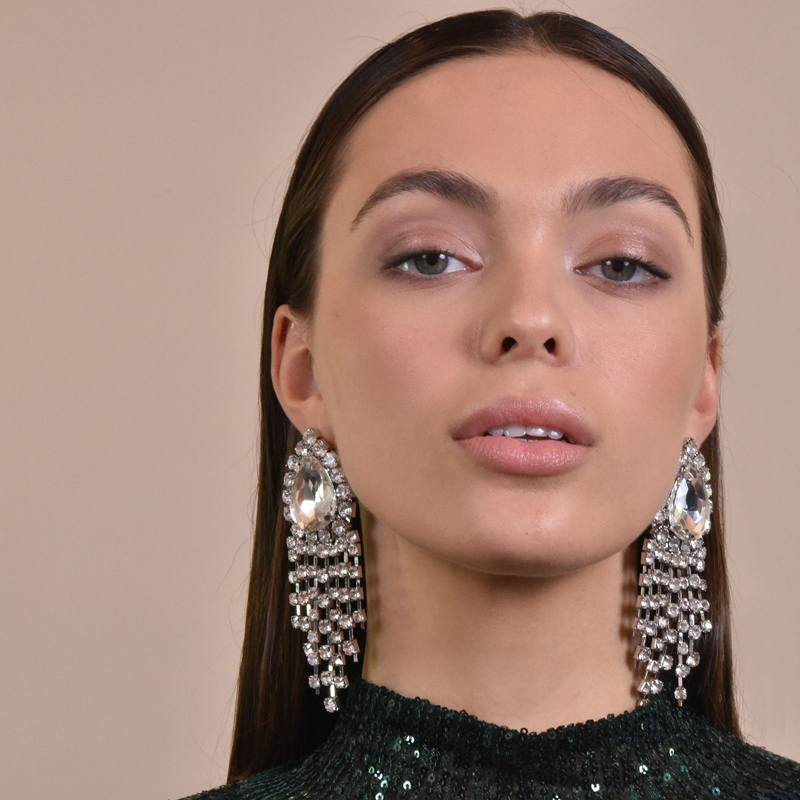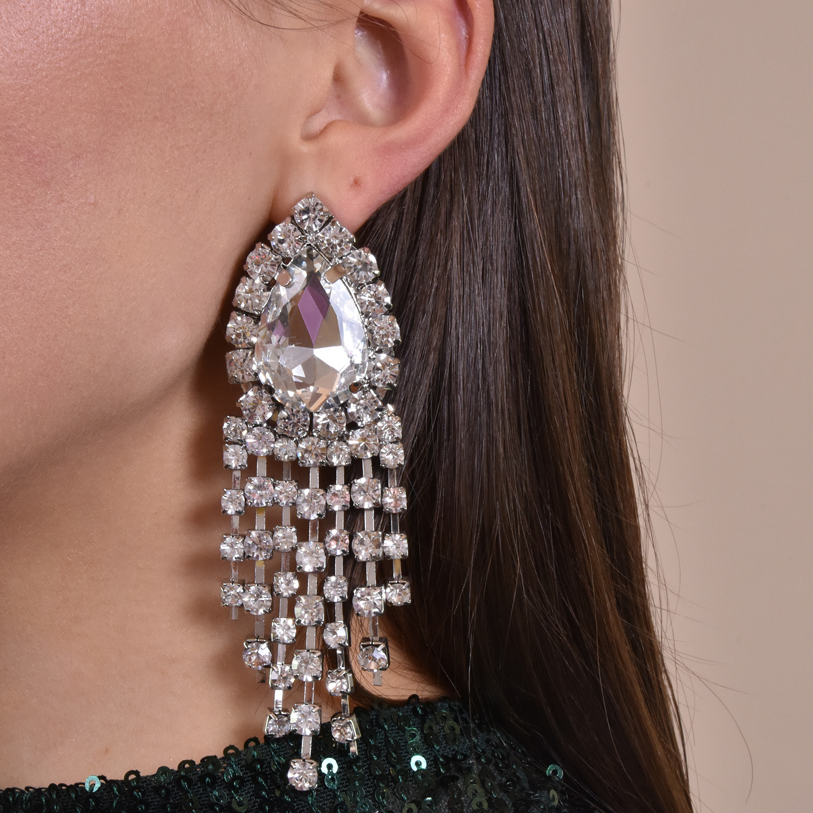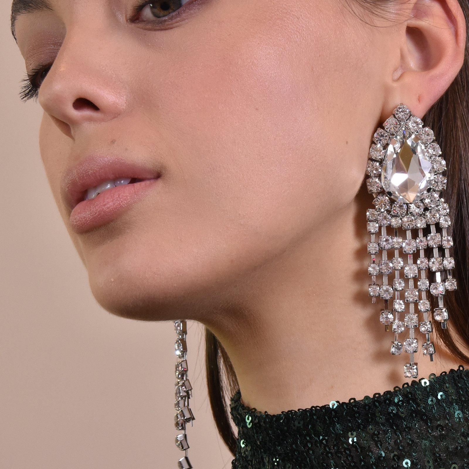 Be bold and italic and never regular! Rayne Crystal Diamante Earrings Silver are another iconic rhinestone design speaking of high fashion. This design features eye-catching diamante studs with shimmering crystal-encrusted diamante tassel strings, allowing you to express your femininity in a bold and elegant way. This design is crafted in environmentally friendly stainless steel (nickel free) with silver plated metal strings. Perfect for formal, semi-formal, dressy, racing, fashion events and more. Available for both pierced and non-pierced ears and available in gold.