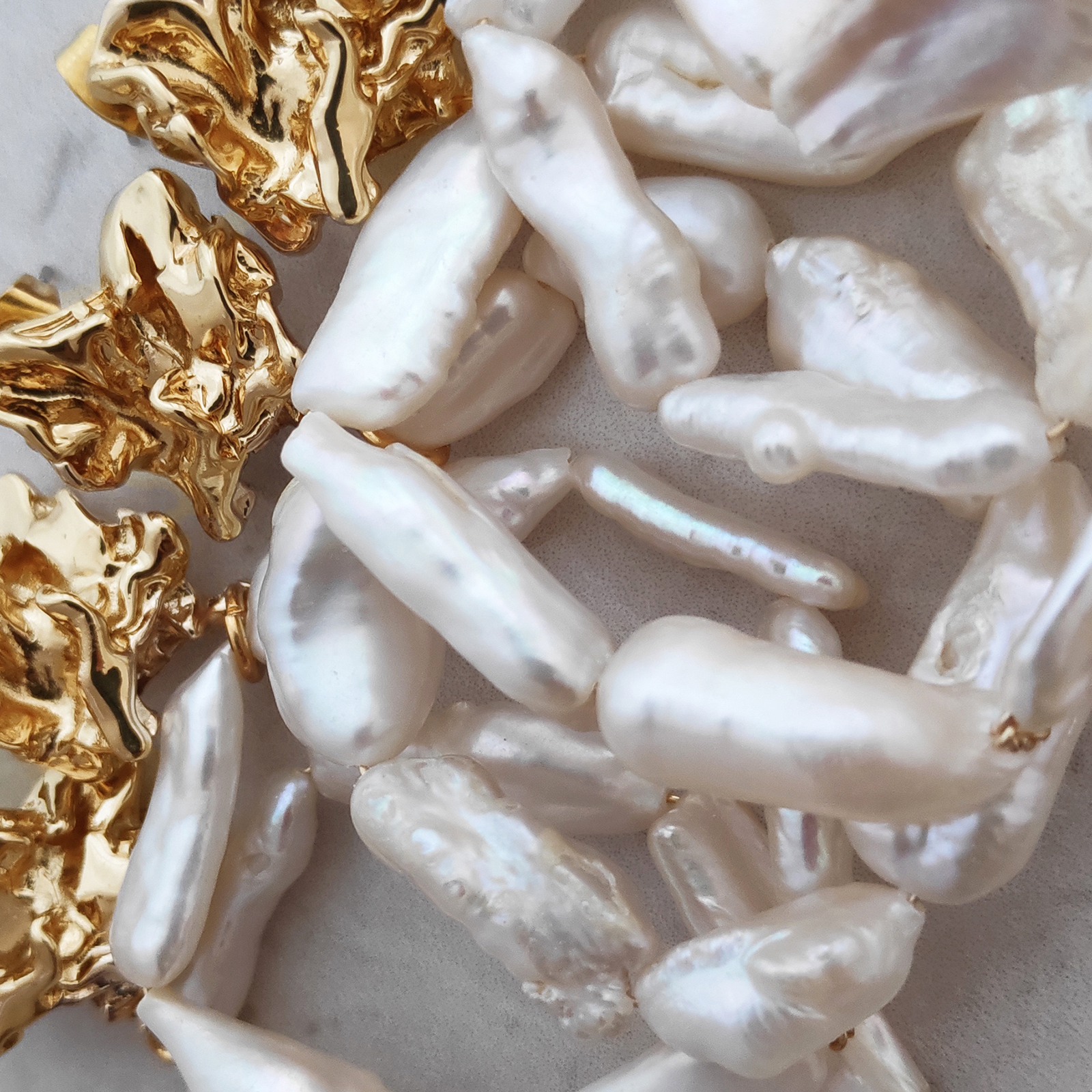 | Made from: | 14K Gold PlatingZinc AlloyLong freshwater pearls |