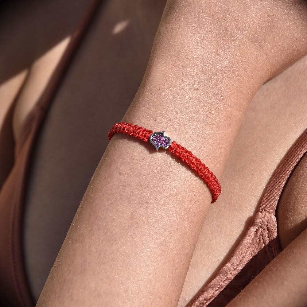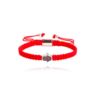 Let no sadness come to this heart, let no trouble come to these arms, let no conflict come to these eyes, let your soul filled with blessing and joy. Introducing Sacha Pave Hamsa Hand Bracelet (Silver Charm Red String) - let the ancient symbol of protection and peace ward off evil energy and bring love, joy and lucky closer. This design features a 5mm thick braided string bracelet adorned with a micro pave hamsa hand with silver embedding. A versatile and gender-neutral piece made for everyday wear. This bracelet comes with an adjustable string knot for a more flexible personal fitting.