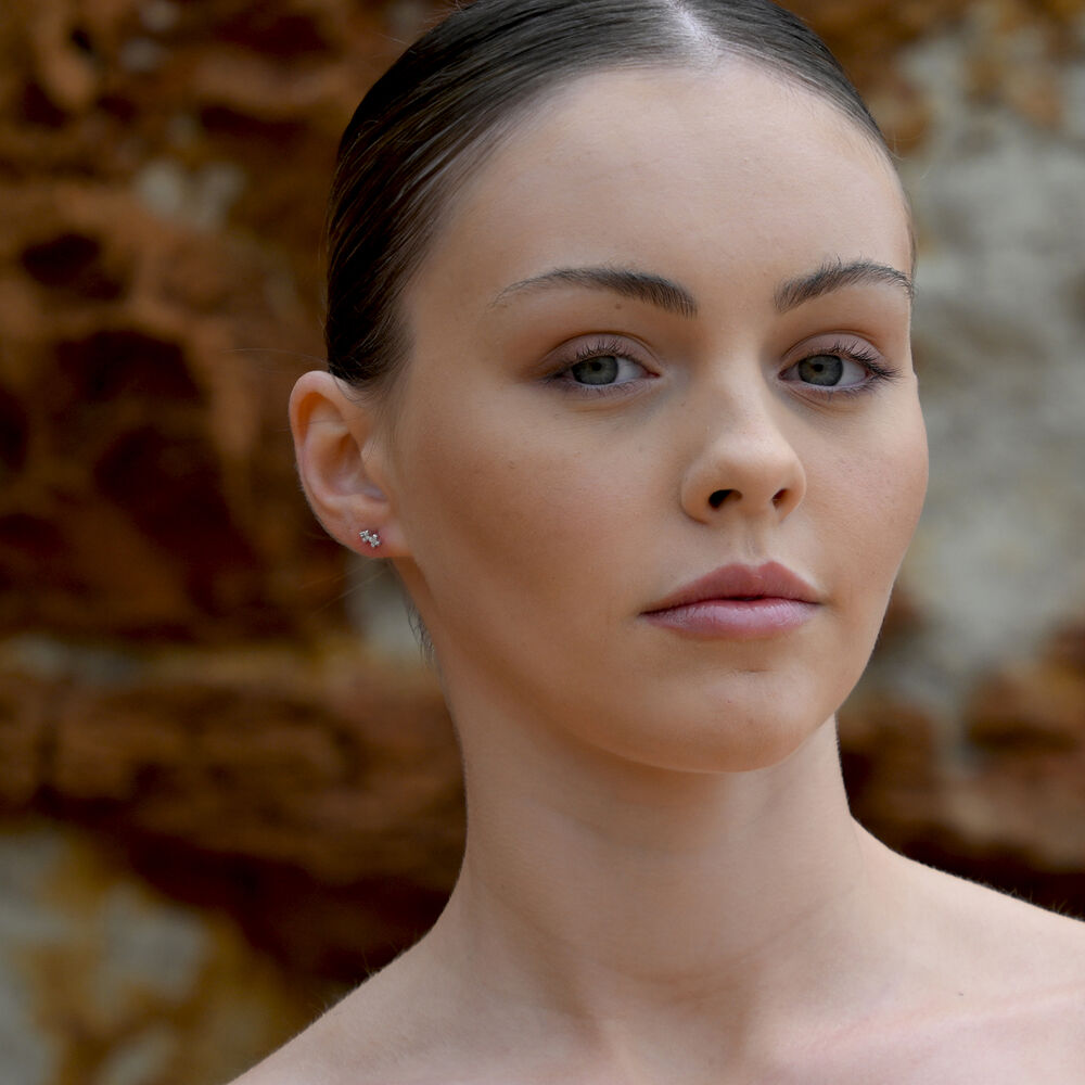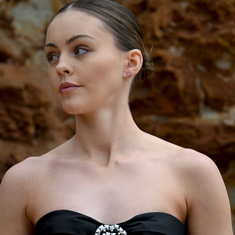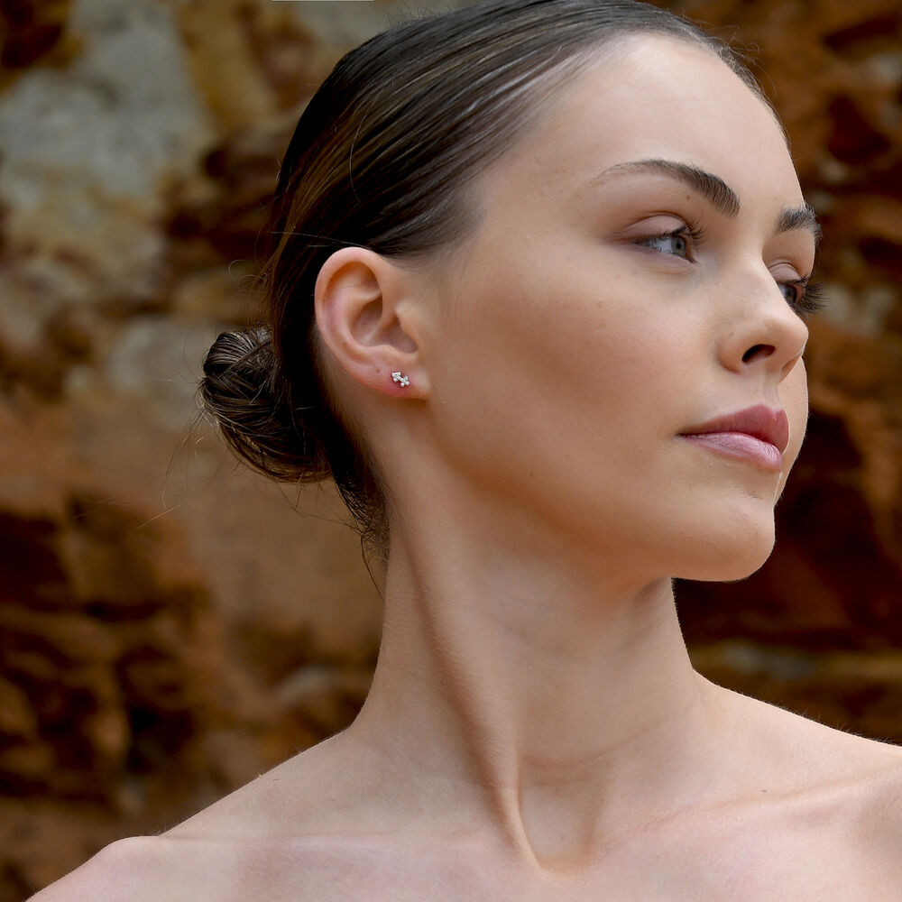 Each earring is meticulously crafted from solid sterling silver and finished with precious white rhodium plating, offering enhanced anti-tarnish protection and a brighter, more radiant silver shine. The surface is set with Australian cubic zirconia pavé, forming a delicate constellation of light that sparkles beautifully with every movement.