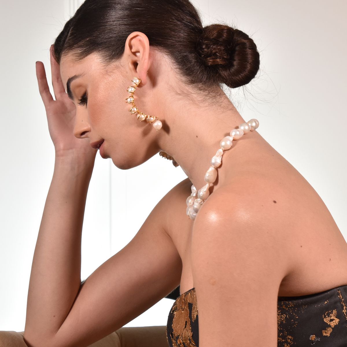 If there is one category carrying the sculptural jewellery movement most visibly, it is statement earrings. They frame the face, change the mood of an outfit instantly and deliver impact even when the rest of the styling is simple. That is one reason why statement earrings continue to sit so strongly in trend and retail language right now.