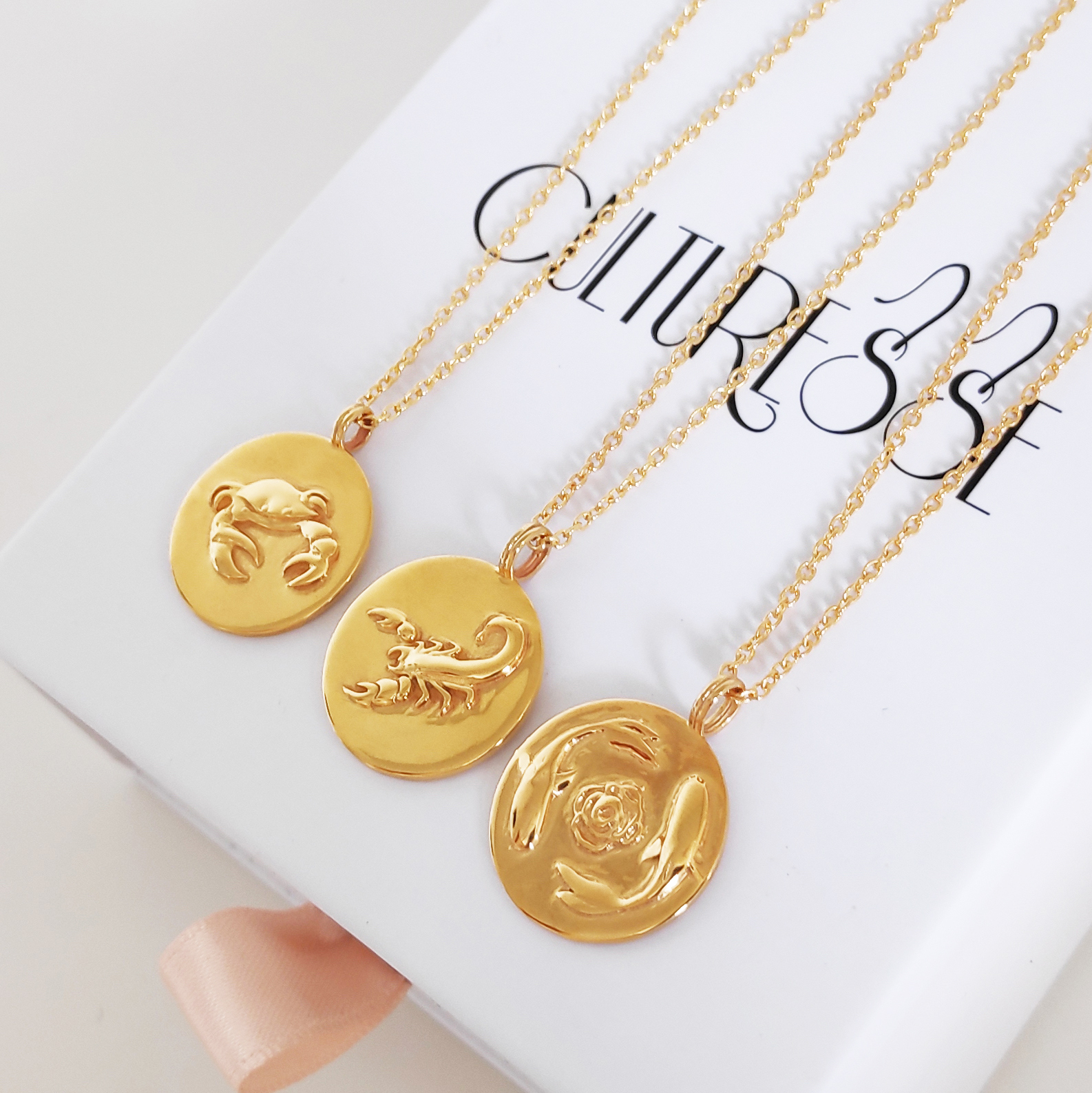 Culturesse Zodiac Necklaces are designed in Melbourne Australia with an artsy and modern touch, and made to last. As per our artisan jewellery ethics, Culturesse Zodiac Necklaces are crafted in solid sterling silver (nickel free) with 2.5 microns of pure 24K gold plating (average gold plating for fashion jewellery is around 0.7 - 1 micron, with 2.5 microns being heavy gold plating, making it more durable). The necklace is also made of solid sterling silver with 2.5 microns of pure 24K gold plating. Each pendant features a 3D raised design which is hand polished to a high shine. Each of the 12 designs is totally unique and original. Your Culturesse Zodiac Necklace is a lifelong keepsake for those who appreciate art, style and quality. Buy it well, wear it longer.