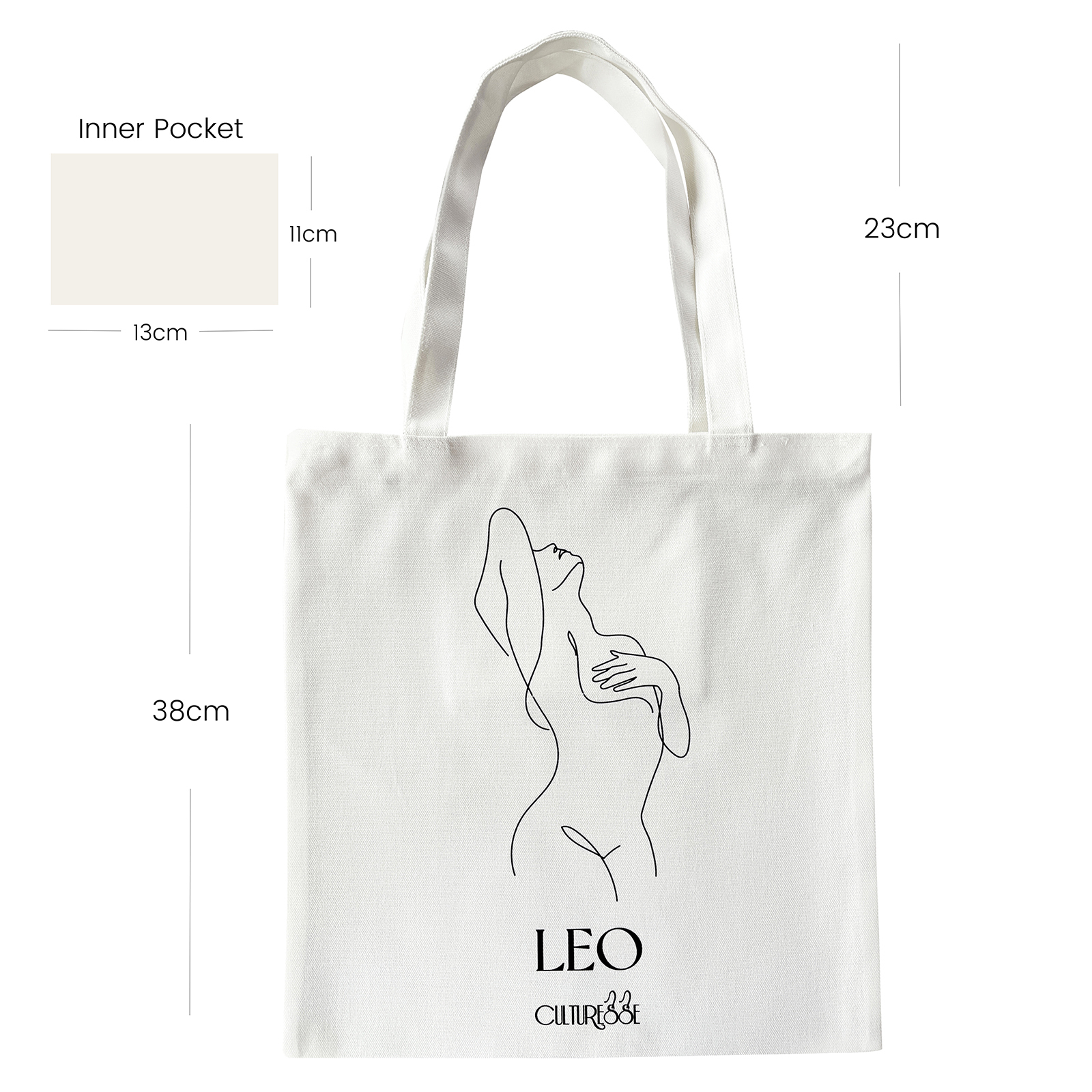 Culturesse Zodiac Muse Tote Bag series is inspired by modern line art and advocating for ethical and eco-friendly living. This unique and limited collection is created by Culturesse graphic artists illustrating and translating unique elements of each zodiac sign in succinct and artsy outlines. This tote bag is made of thick cotton (85% cotton, 15% polyester) of 30 grams per tex for strong durability. Each bag also comes with a zip and an inner pocket for practical use. An artistic, minimalist, and sustainable tote bag adding an artsy vibe to your everyday life. It also makes a perfect and unique gift for yourself and loved ones. Made in Australia.