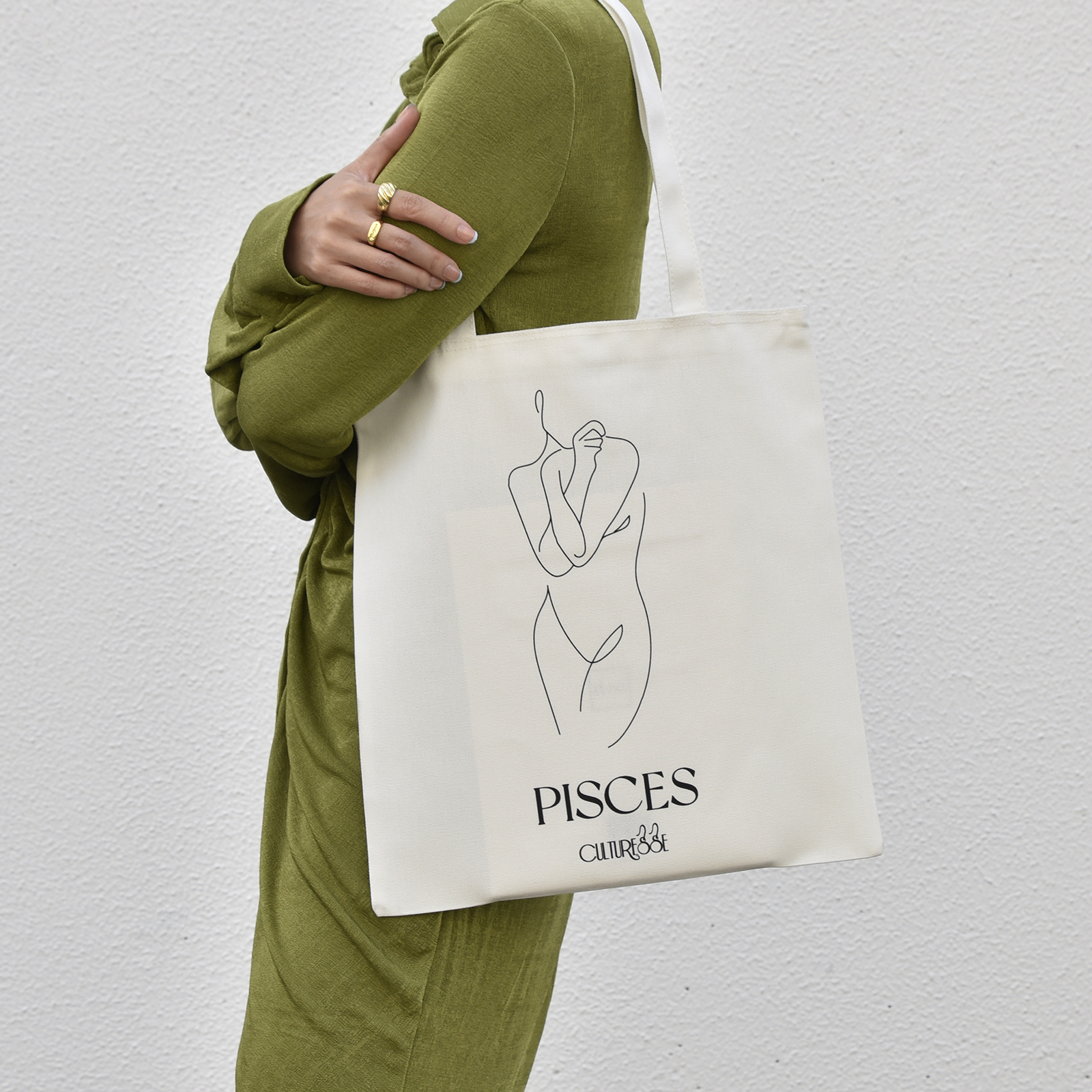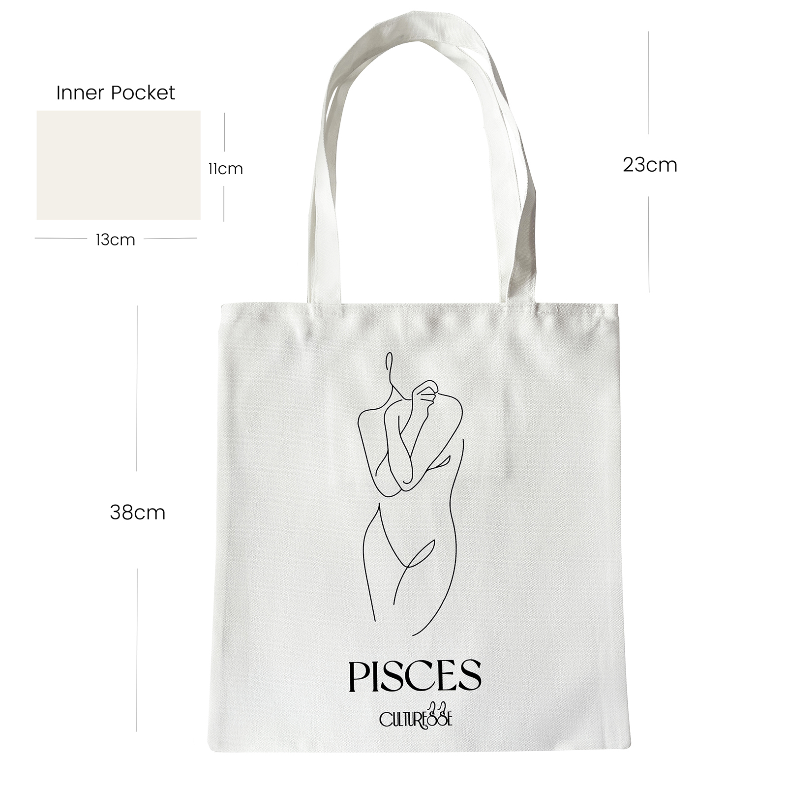Culturesse Zodiac Muse Tote Bag series is inspired by modern line art and advocating for ethical and eco-friendly living. This unique and limited collection is created by Culturesse graphic artists illustrating and translating unique elements of each zodiac sign in succinct and artsy outlines. This tote bag is made of thick cotton (85% cotton, 15% polyester) of 30 grams per tex for strong durability. Each bag also comes with a zip and an inner pocket for practical use. An artistic, minimalist, and sustainable tote bag adding an artsy vibe to your everyday life. It also makes a perfect and unique gift for yourself and loved ones. Made in Australia.