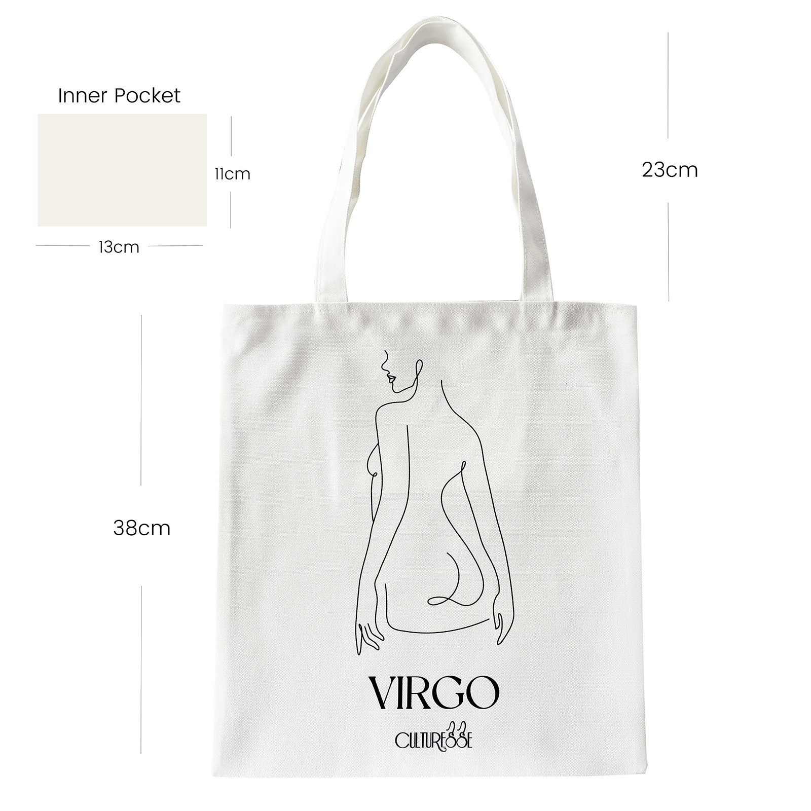 Culturesse Zodiac Muse Tote Bag series is inspired by modern line art and advocating for ethical and eco-friendly living. This unique and limited collection is created by Culturesse graphic artists illustrating and translating unique elements of each zodiac sign in succinct and artsy outlines. This tote bag is made of thick cotton (85% cotton, 15% polyester) of 30 grams per tex for strong durability. Each bag also comes with a zip and an inner pocket for practical use. An artistic, minimalist, and sustainable tote bag adding an artsy vibe to your everyday life. It also makes a perfect and unique gift for yourself and loved ones. Made in Australia.