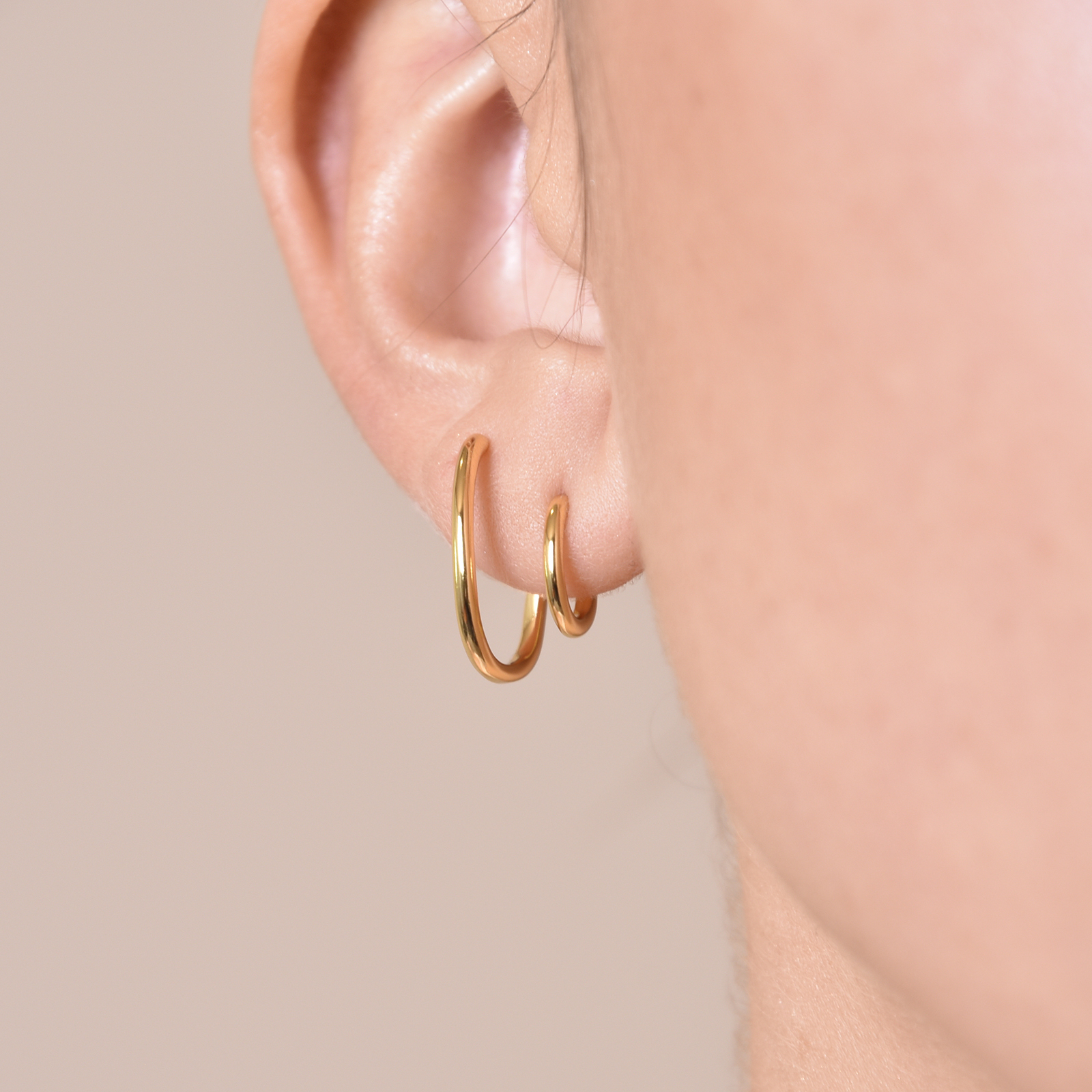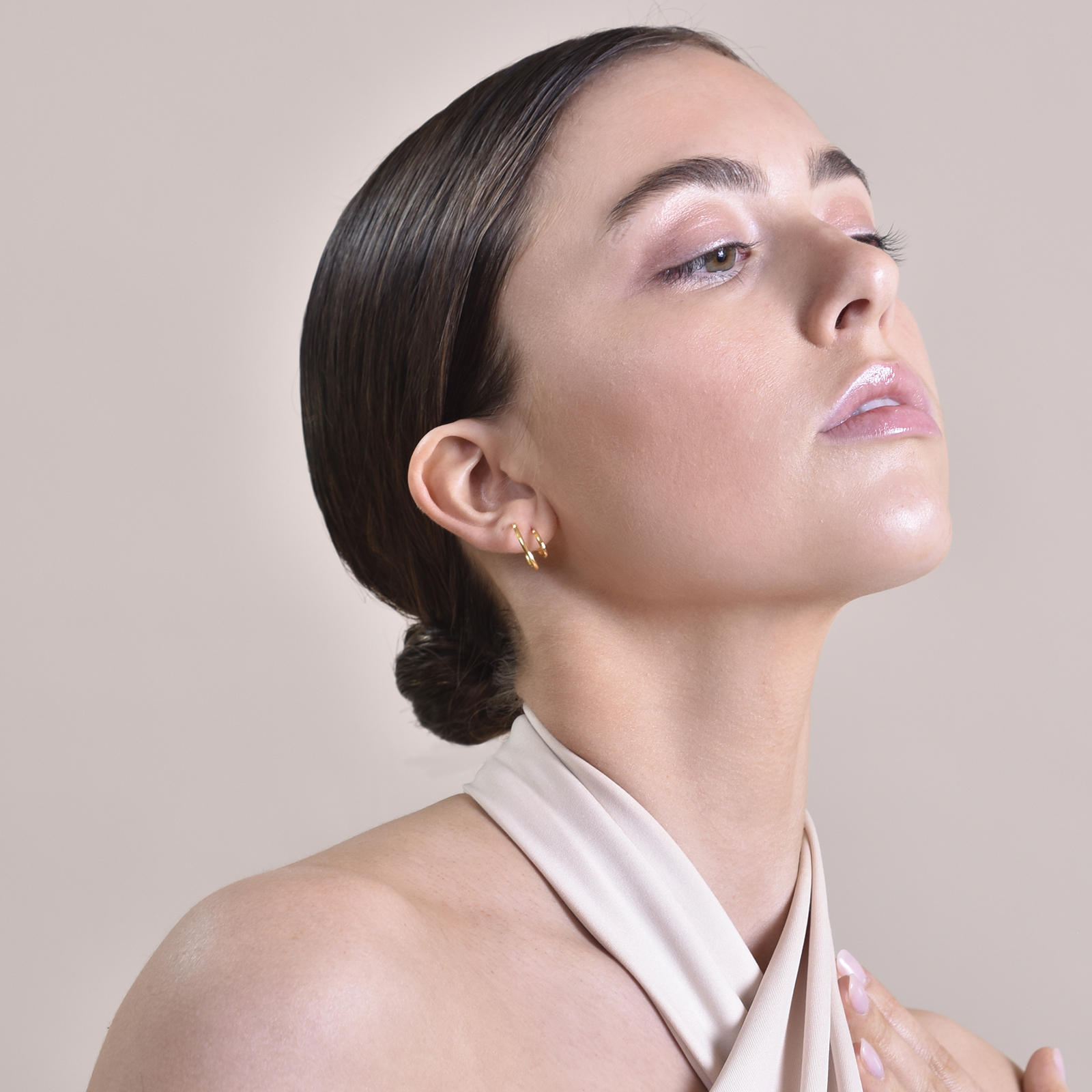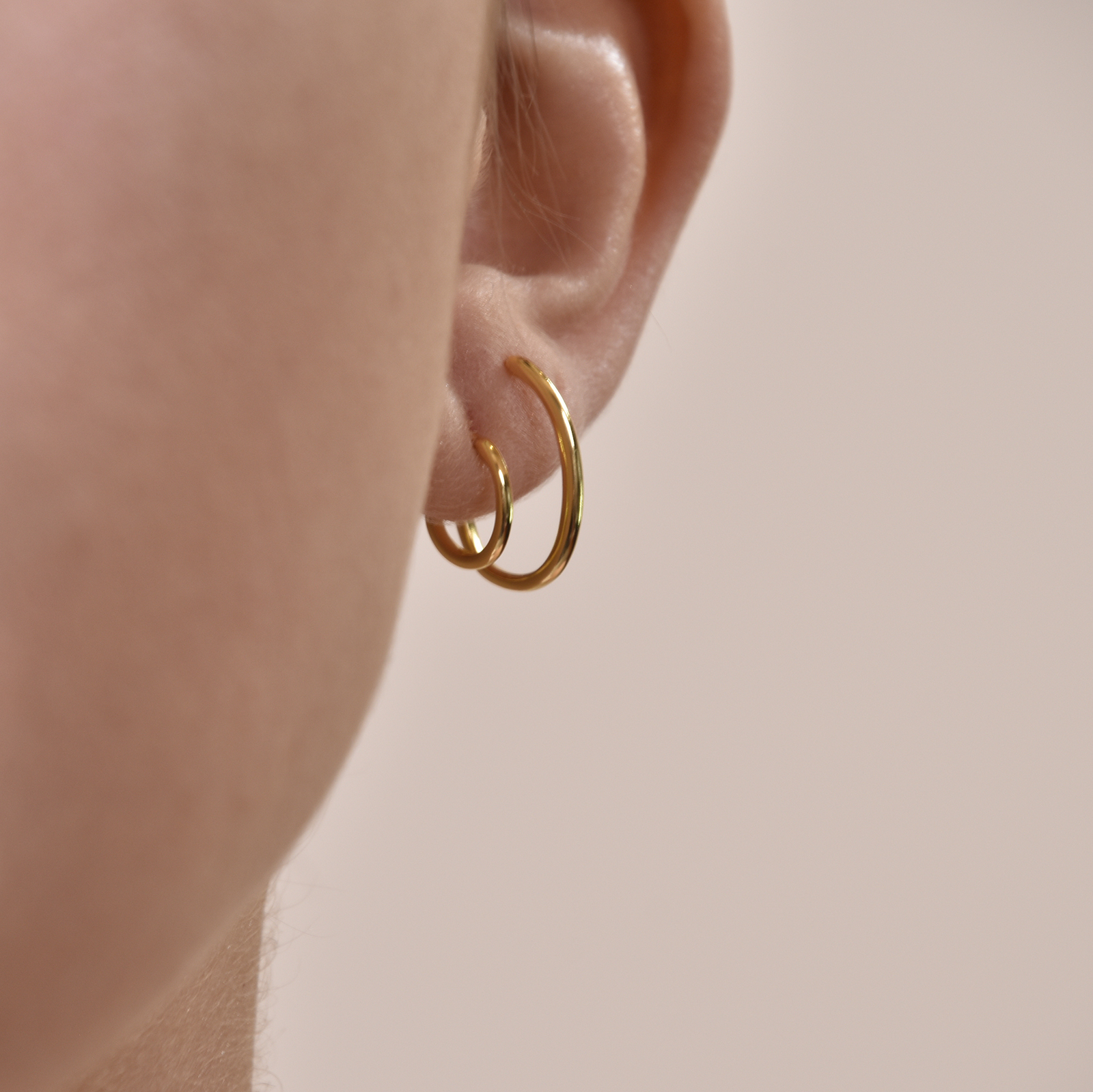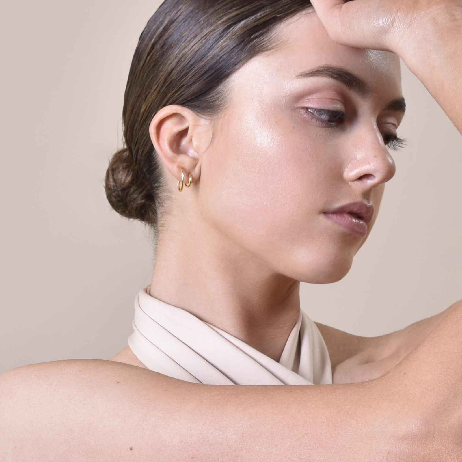 Art is a line around your thoughts. Introducing Simone Twin Loop Earrings (Gold Vermeil) - an artsy and minimal style ear love for those who appreciate something simple and unique. This design features a double loop joined at the front in a continuous line, creating a spatial 3D dimensional effect around your earlobe. The earrings are made of solid sterling silver and 2.5 microns of 18K gold plating (heavily gold plated to Gold Vermeil Jewellery Standards). They are of a comfortable weight for wearing all day. Perfect for modern, creative, fine, chic, minimalist, earring layering, earring mismatching, smart casual, casual, everyday styles and more. Also suitable for uni-sex wear. Hypoallergenic, nickel, cadmium and lead free.