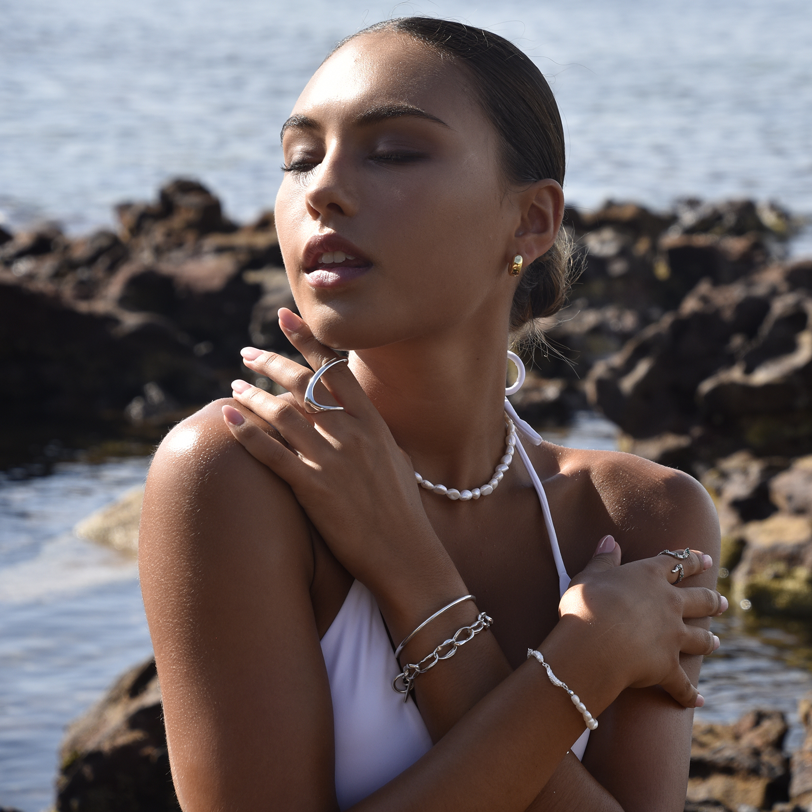 Where you see this badge, it means the jewellery is made of solid sterling silver or titanium, and may be gold plated or gold filled on top of the base metal. These pieces if cared for properly will last a lifetime.