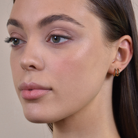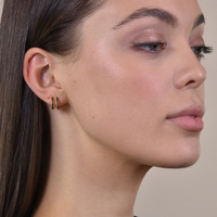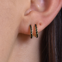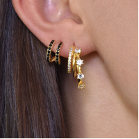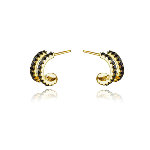 Everyday elevated chic style done effortlessly. Introducing Sydney Dainty Twin Loop Earrings — a defined and delicate ethical ear love for modern muses. This design is crafted in solid sterling silver with 2.5 microns of 18K gold plating (to Gold Vermeil Jewellery Standards). It features 2 half loops joined at one end, embellished with pave quality black zircon. Simple and sophisticated, this pair makes a perfect dainty statement for fine style lovers. Hypoallergenic, nickel, cadmium and lead free.