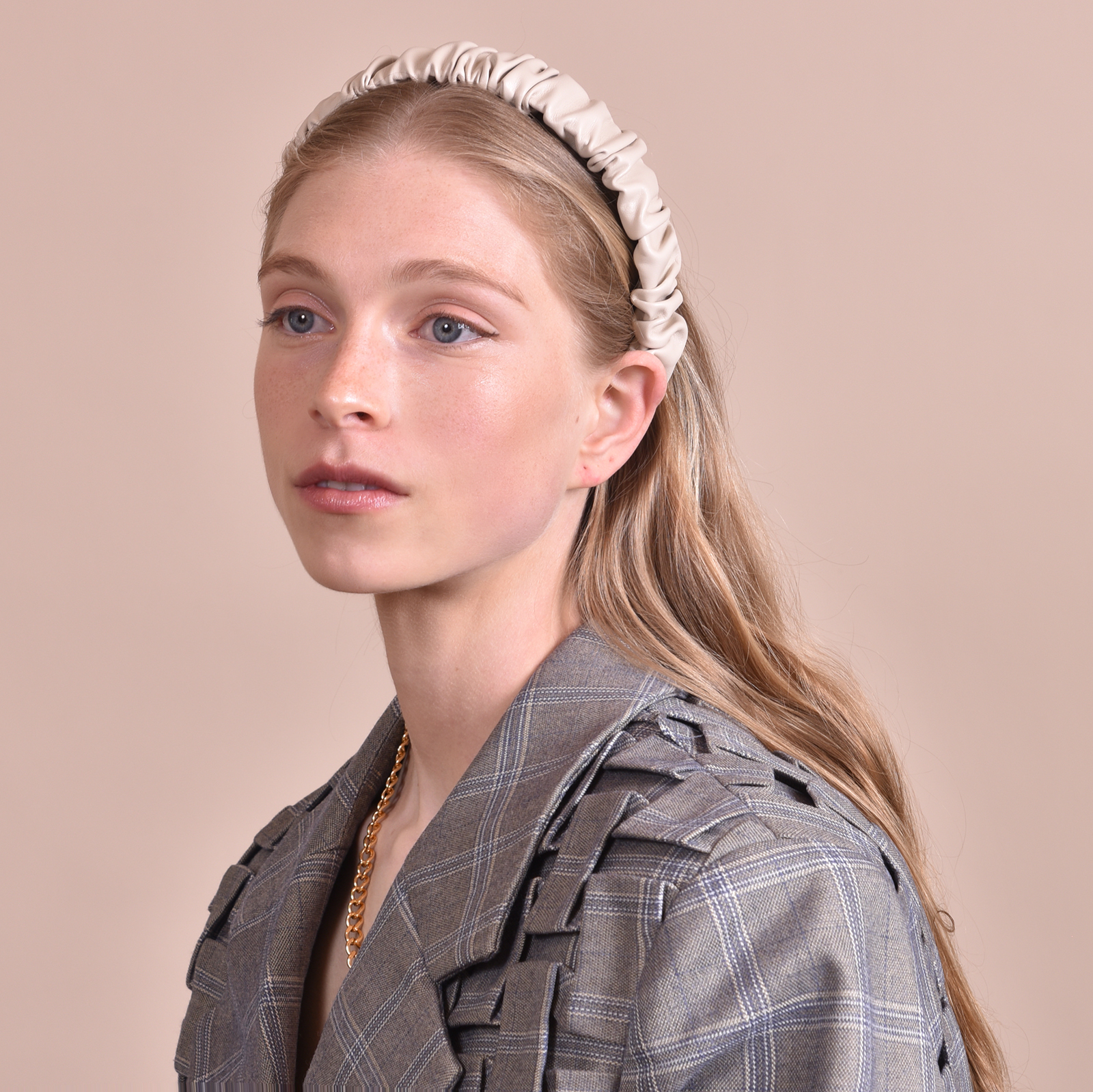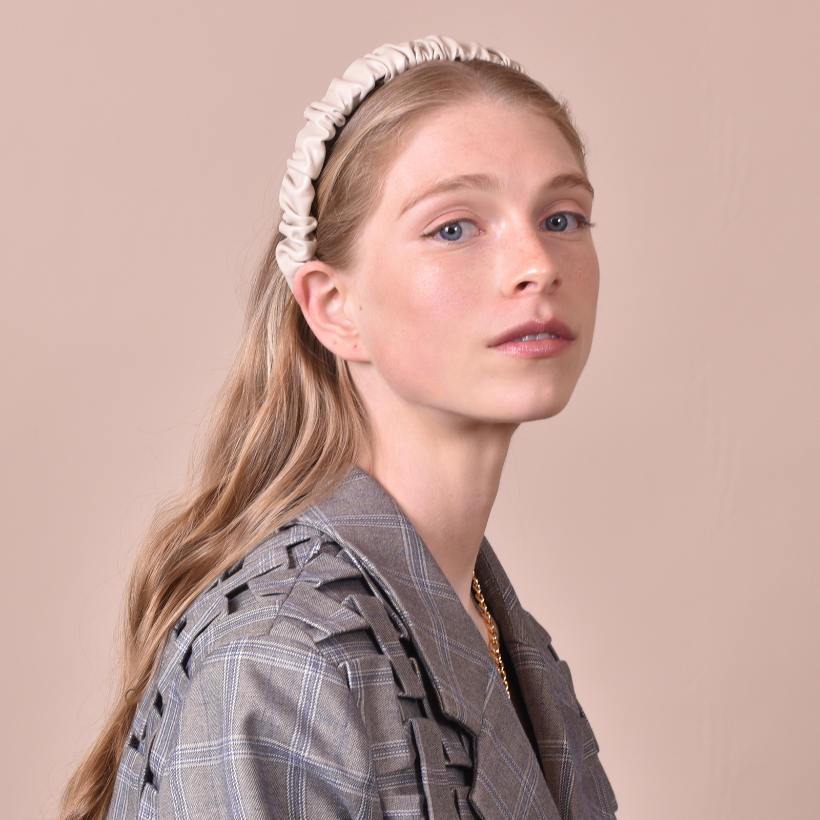 Trendy, artsy, and unique. Introducing Tallulah Scrunched Headband (Beige) - a contemporary style headpiece for stylish muses who fancy something different. This headpiece features a scrunched style PU leather headband that makes everyday styling sleek, fun and effortless. It comes in 4 different colours. Take your pick. Suitable for modern, creative, chic, smart casual, casual styles and more. Also suitable for teens.