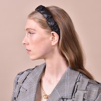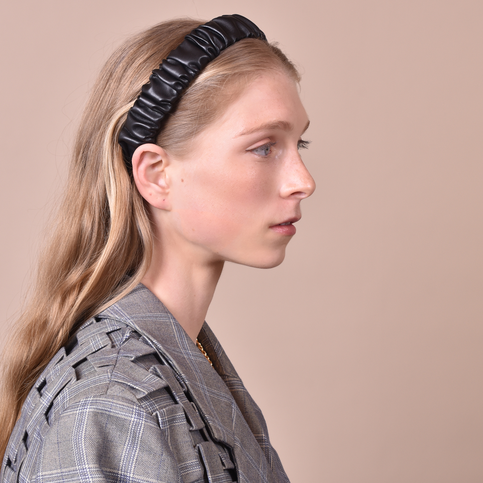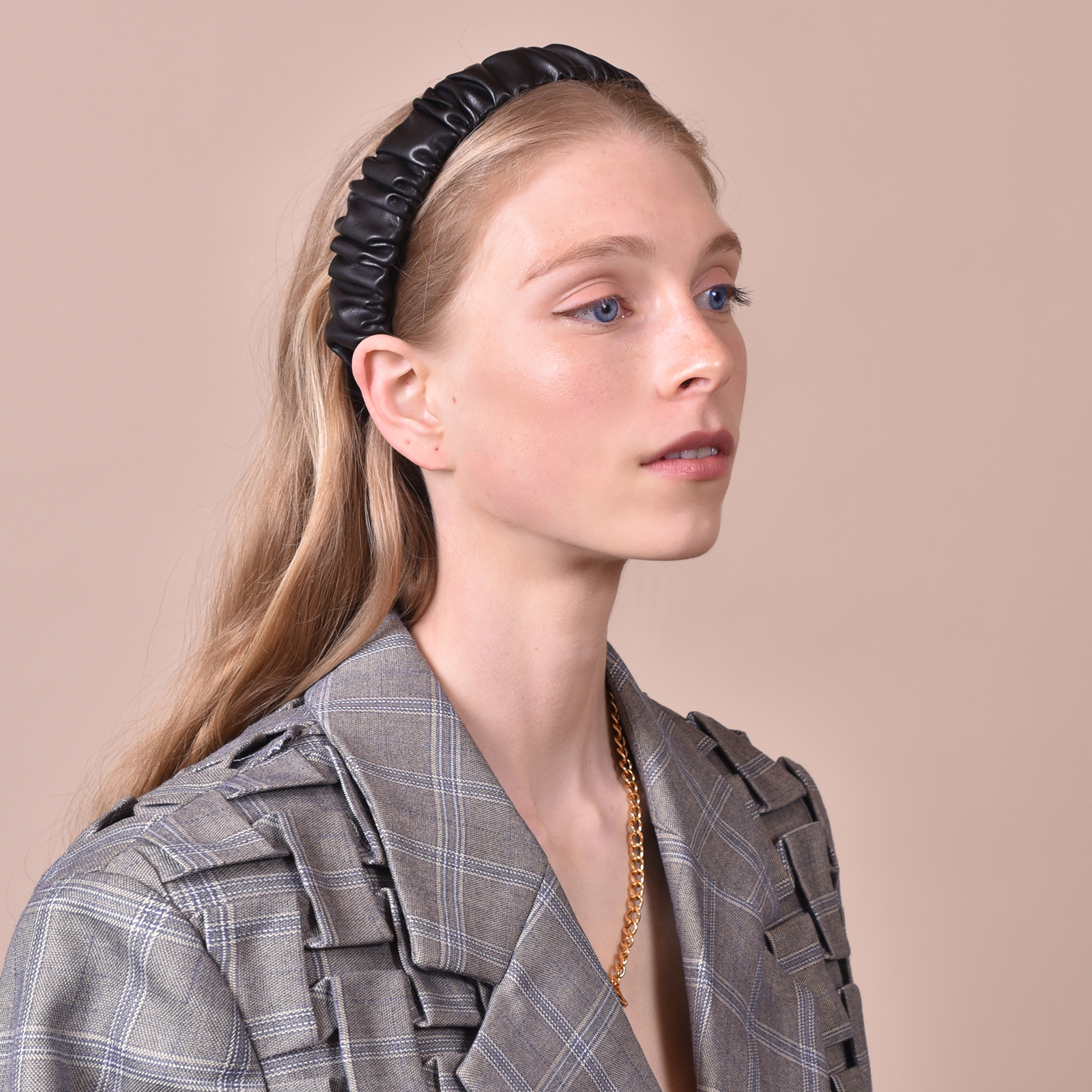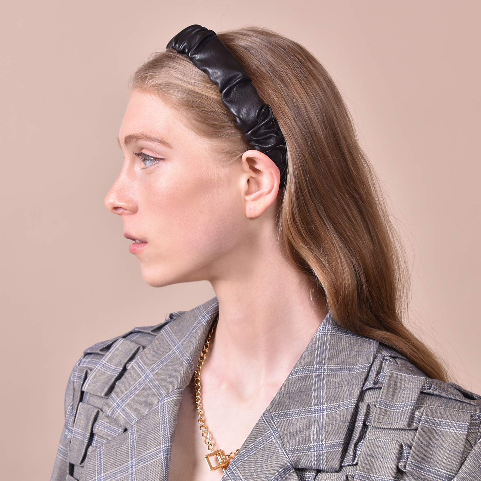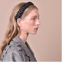 Trendy, artsy, and unique. Introducing Tallulah Scrunched Headband (Black) - a contemporary style headpiece for stylish muses who fancy something different. This headpiece features a scrunched style PU leather headband that makes everyday styling sleek, fun and effortless. It comes in 4 different colours. Take your pick. Suitable for modern, creative, chic, smart casual, casual styles and more. Also suitable for teens.