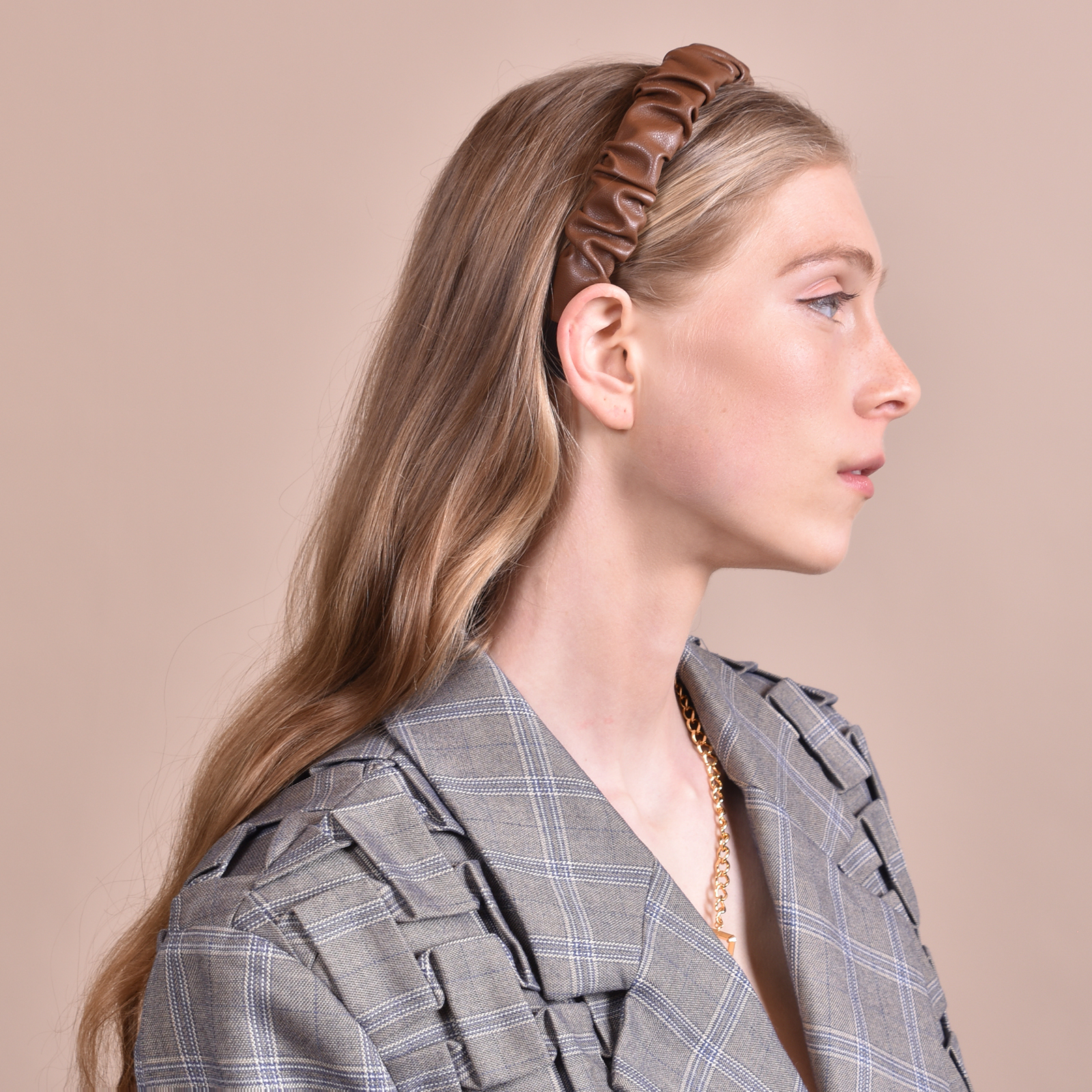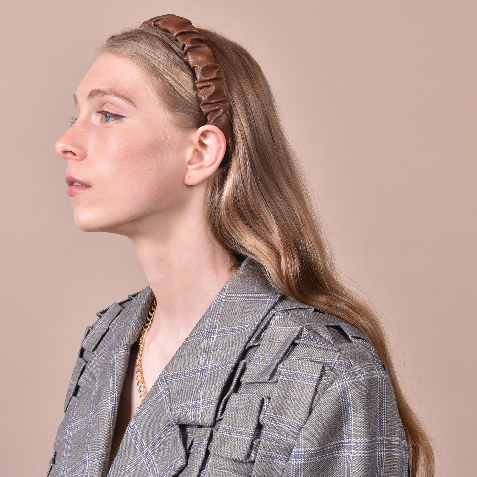 Trendy, artsy, and unique. Introducing Tallulah Scrunched Headband (Brown) - a contemporary style headpiece for stylish muses who fancy something different. This headpiece features a scrunched style PU leather headband that makes everyday styling sleek, fun and effortless. It comes in 4 different colours. Take your pick. Suitable for modern, creative, chic, smart casual, casual styles and more. Also suitable for teens.