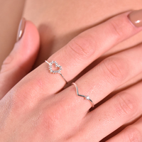 Delicate, chic and unique. Introducing Tavia Fine Everyday Silver Open Ring - a minimalist style silver ring for women and girls of all ages. This design features a quality zirconia stone placed off centre on the ring band. The ring is crafted in solid sterling silver. It can be easily adjusted manually for the best fit. Perfect for modern, minimalist, ring stacking, casual, everyday styles and more. Hypoallergenic, nickel, cadmium and lead free.