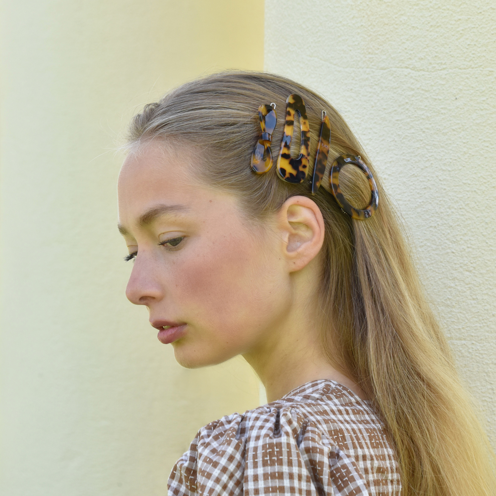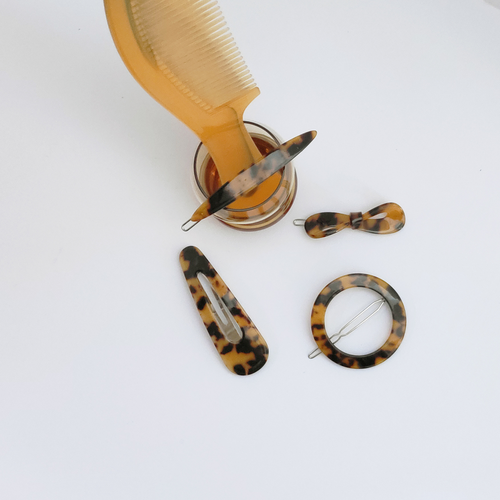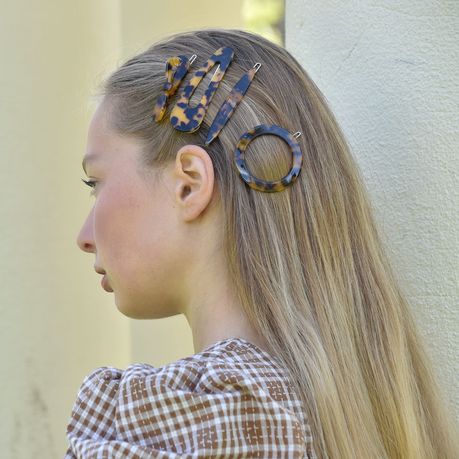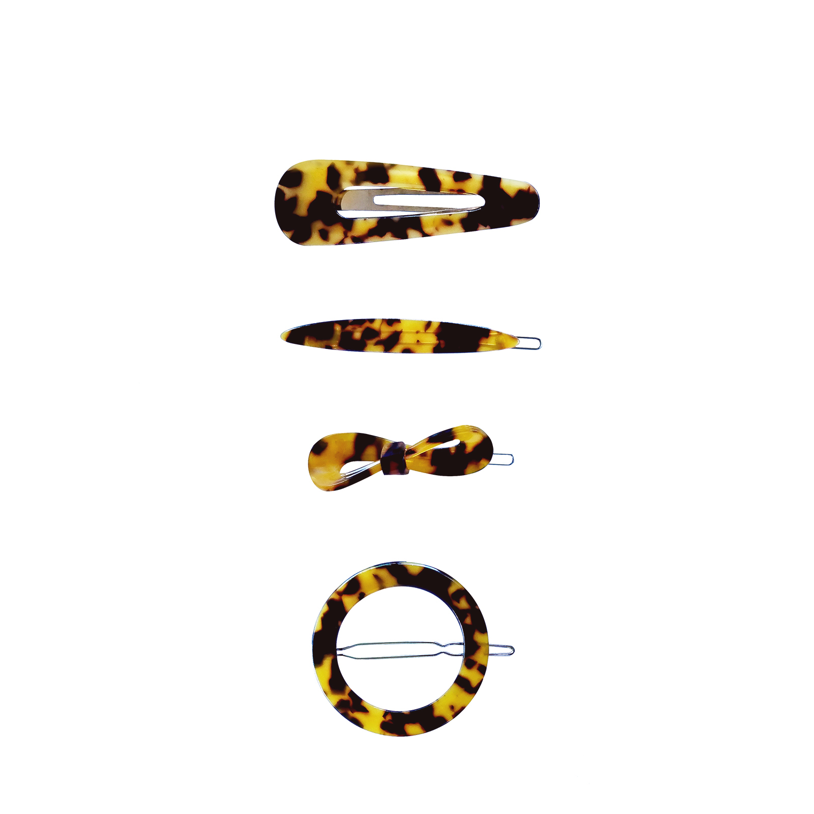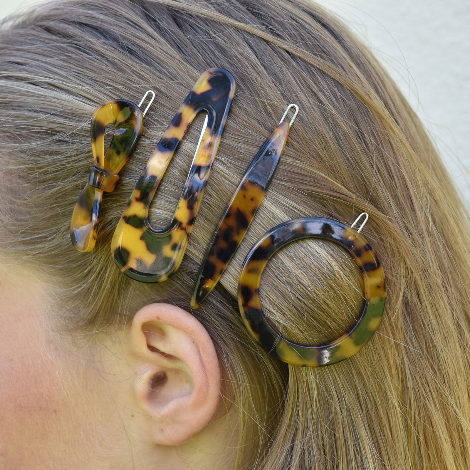 Contemporary leopard hair clips in various shapes (4 pieces per set) Length, width, weight vary from piece to piece Weight as the whole set: 22g