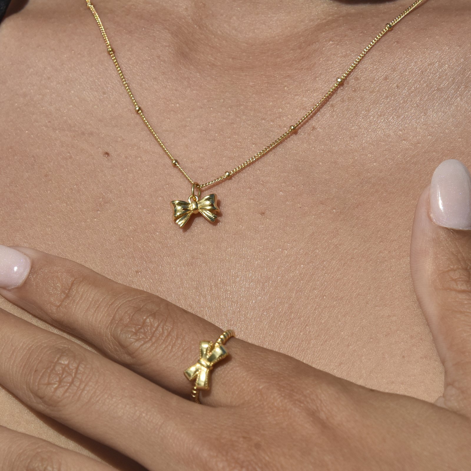 Retro chicness wth a modern touch. Introducing Tilda Artisan Bow Tie Pendant Necklace (Gold) - a feminine and dainty neck love for women and girls of all ages. This design features a bow tie pendant neatly polished attached to a beaded fine chain. This necklace is made in solid sterling silver with quality 18k gold plating for hypoallergenic and enduring wear. Perfect for almost all personal styles and add a delicate joy to your everyday dressing. Hypoallergenic, nickel, lead, and cadmium free.
