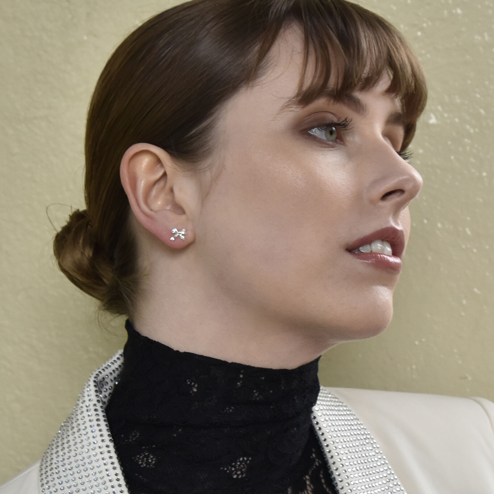 Retro chicness wth a modern touch. Introducing Tilda Dainty Bow Tie Earrings (Silver) - a feminine and dainty ear love for women and girls of all ages. This design features bow tie earrings with a subtle movement and flow. The earrings are made in solid sterling silver for hypoallergenic and enduring wear. Perfect for almost all personal styles and add a delicate joy to your everyday dressing. Hypoallergenic, nickel, lead, and cadmium free.