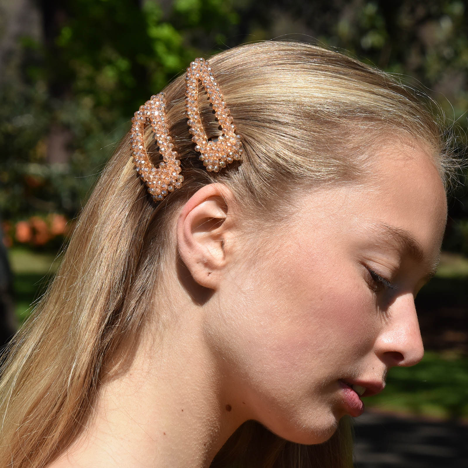 Retro style crystal beads hair clip set (2 pieces) Length 8cm, Width 2.5cm, Weight 13.5g (for each hair clip)