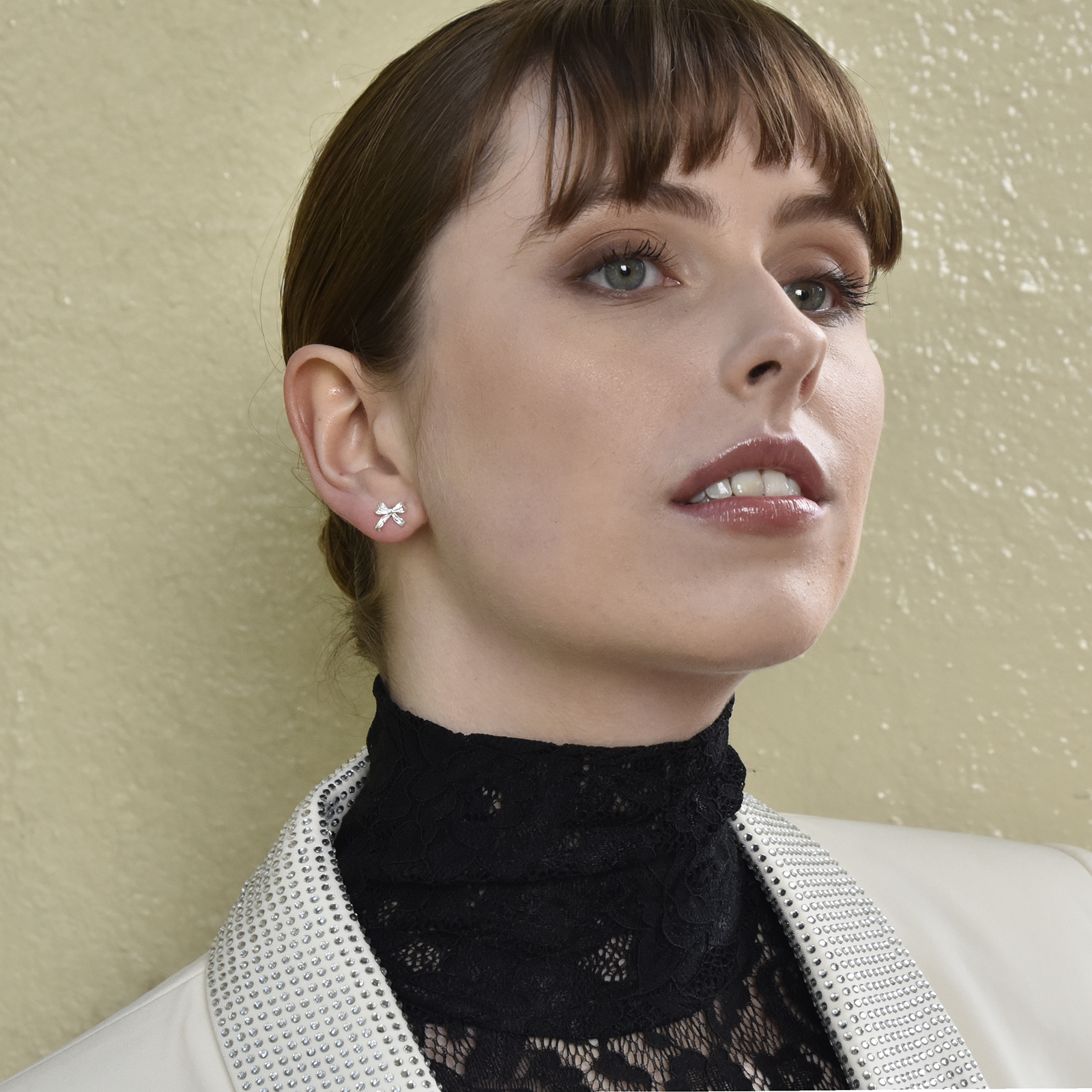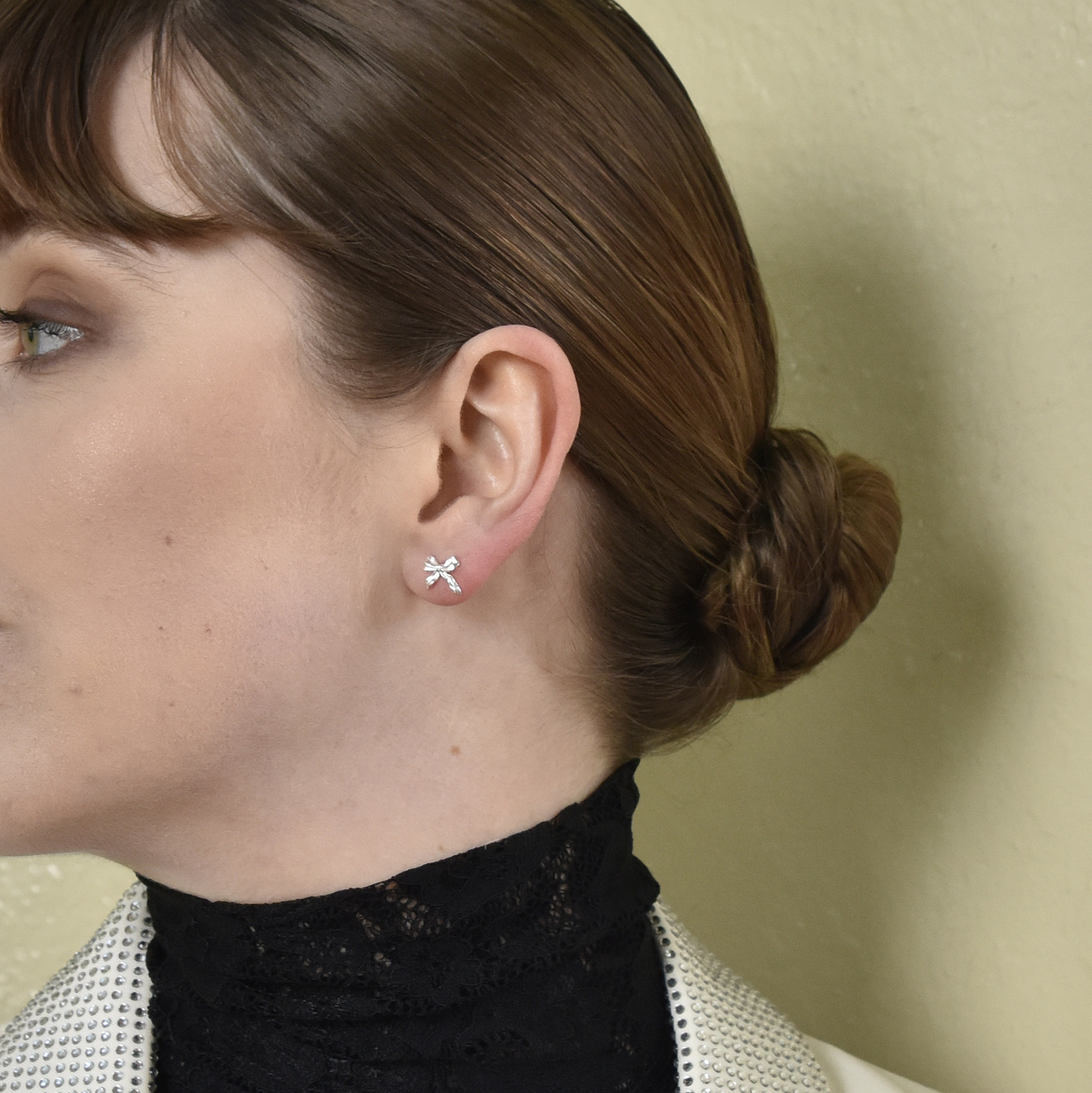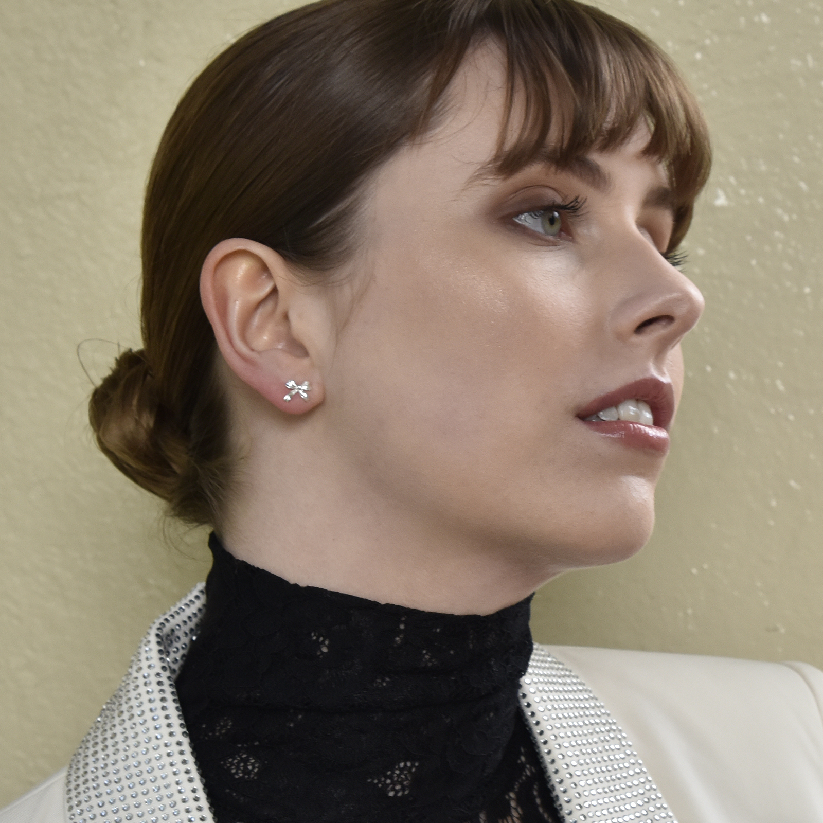Retro chicness wth a modern touch. Introducing Tilda Dainty Bow Tie Earrings (Silver) - a feminine and dainty ear love for women and girls of all ages. This design features bow tie earrings with a subtle movement and flow. The earrings are made in solid sterling silver with white rhodium plating for hypoallergenic, an extra anti-tarnish protection and enduring wear. Perfect for almost all personal styles and add a delicate joy to your everyday dressing. Hypoallergenic, nickel, lead, and cadmium free.