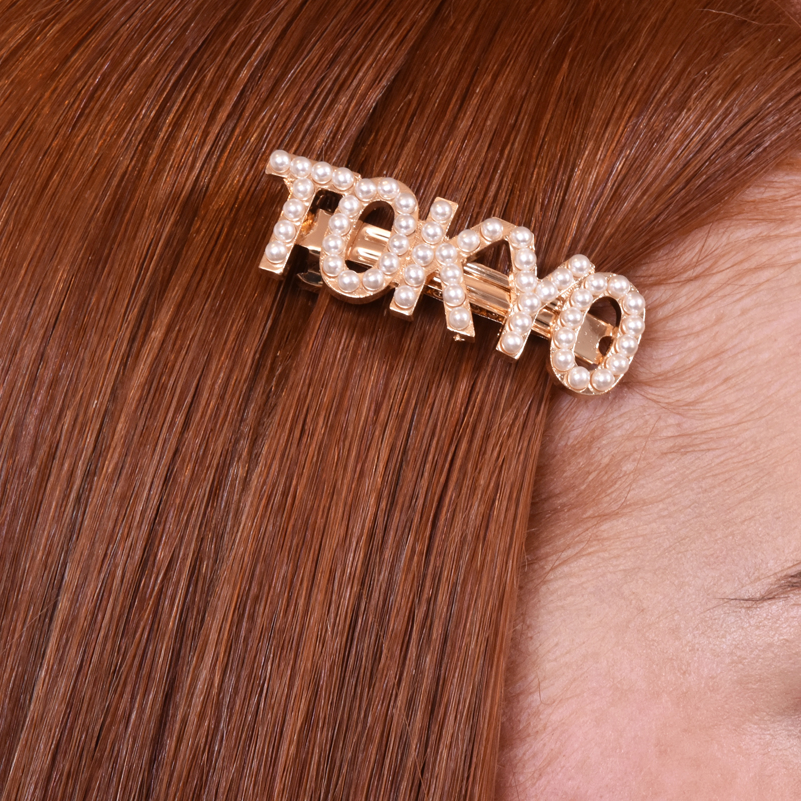 Hair statement easily done! Introducing Tokyo Pearly Statement Barrette - a modern and eye-catching hair accessory for every stylish girl who loves to stand out in a crowd. This piece features a contemporary gold letter clip decorated with simulated pearls forming ‘Tokyo’. A hair zest piece for fashionistas of all ages.