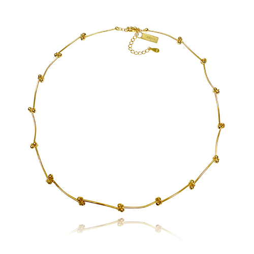 I am rooted but I flow. Introducing Trust The Flow Artisan Necklace (Gold) - a contemporary and artsy style neckpiece for a modern high fashion touch. This design features interconnected metal bars, each offset to the next. This necklace is made in solid sterling silver with 18K gold plating for a noble gold shine and hypoallergenic wear. It is 46cm long with a 5cm adjustable link for your ideal fit. Perfect for modern, artsy, creative, chic, minimalist, feminine, coastal, smart casual, casual, everyday style and more. Hypoallergenic, nickel, lead, and cadmium free.