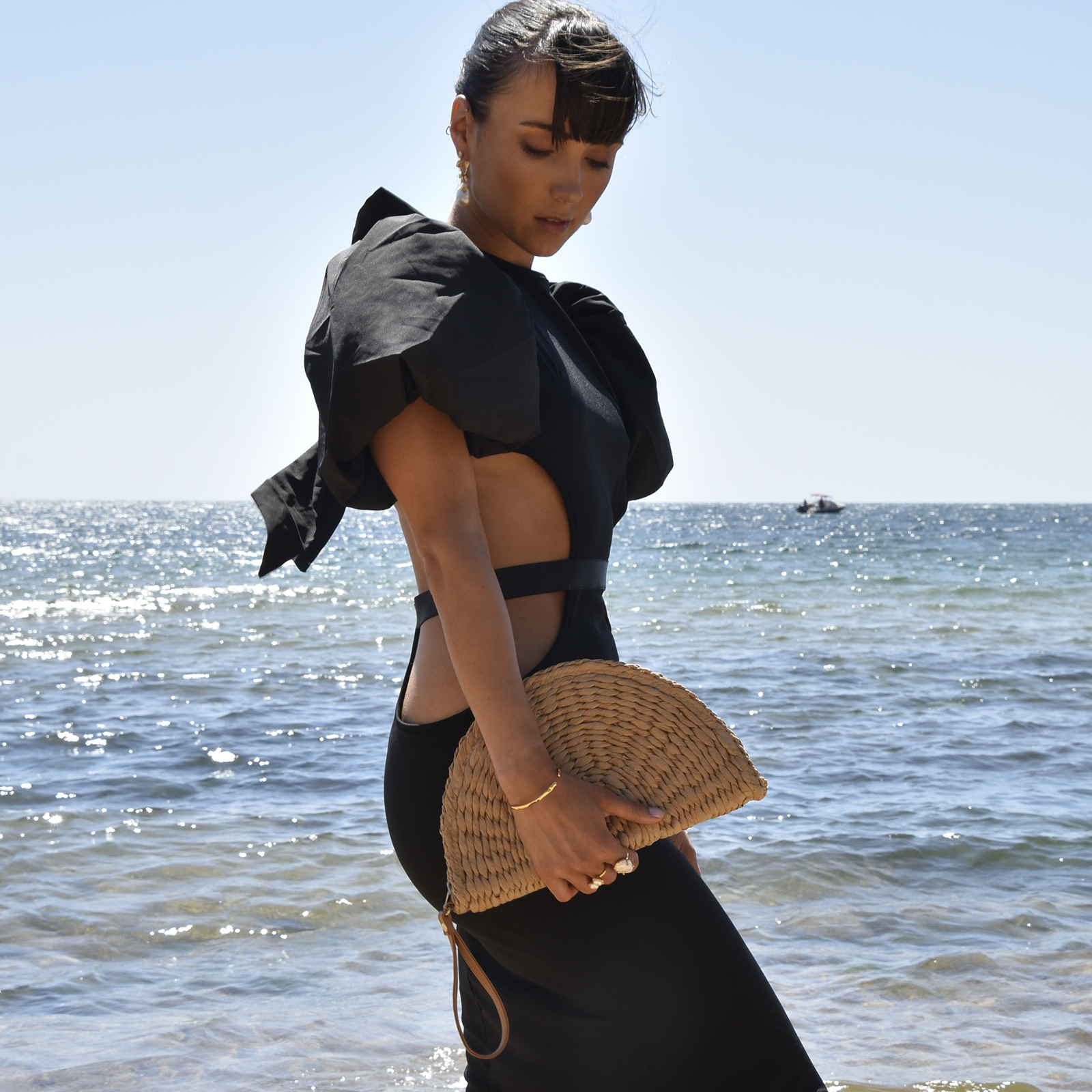 Earthy ‘carrier’ with an artsy curve. Introducing Vana Natural Hand Woven Straw Bag (Tan) - a stylish and unique accessory to complete the look - chilled, chic, or dressy. This deign features a semi circle shaped woven bag made of straws with a vegan leather hand stripe. This bag comes in two different colours - white and brown. Perfect for summer, beach, bohemian, coastal, earthy, feminine, chic, casual, relaxed, smart causal, casual, and everyday style.