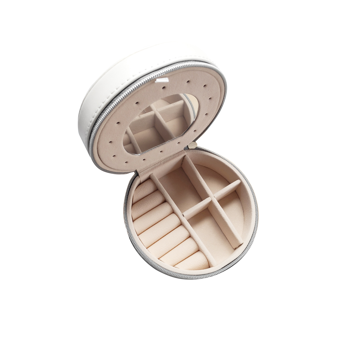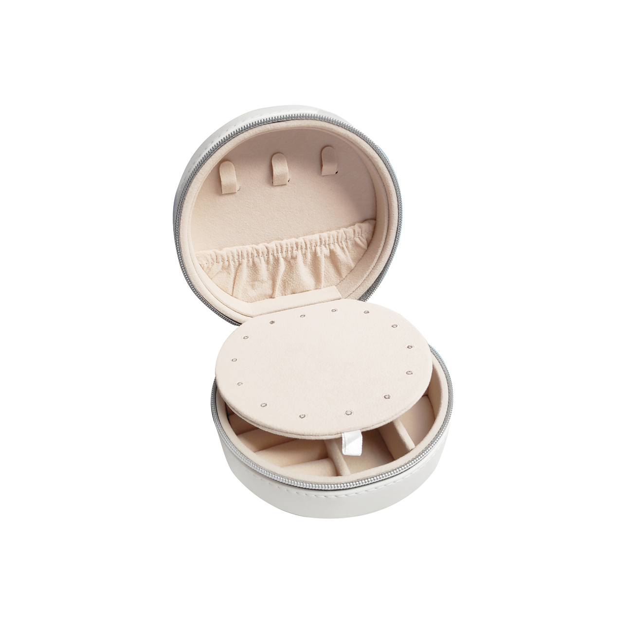 Give your precious jewellery a stylish ‘home’. Introducing Culturesse Vegan Leather Jewellery Storage Travel Case - a fine and modern jewellery storage and carrier that is simple and classic. This adorable jewellery case is crafted in quality vegan leather with neat stitching. Femininity, softness and a sense of luxury are expressed in the trendy round shape, full circular zip closure and the soft cream coloured inner storage spaces. Perfect for gifts, fine and dainty jewellery storage and a stylish travel companion.
