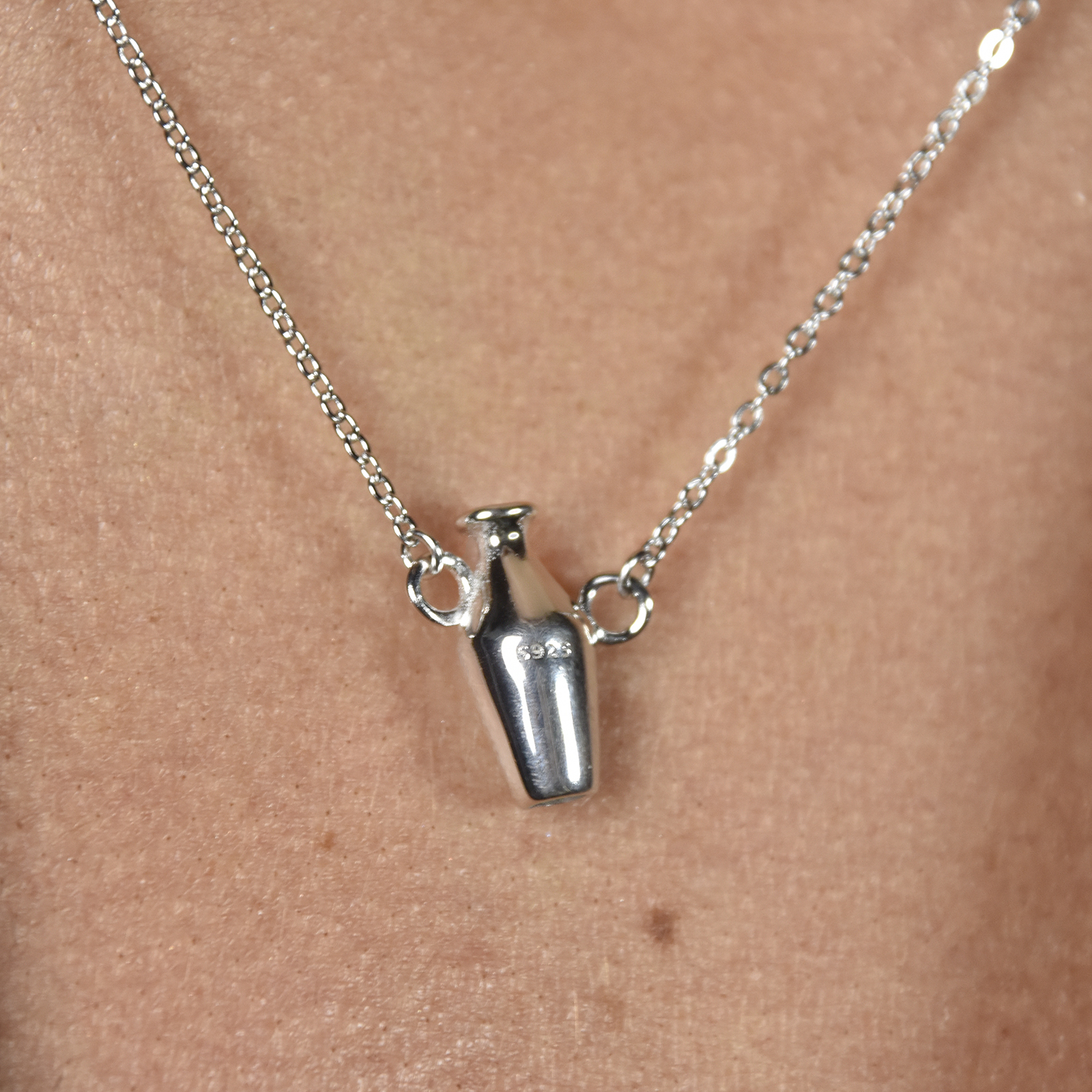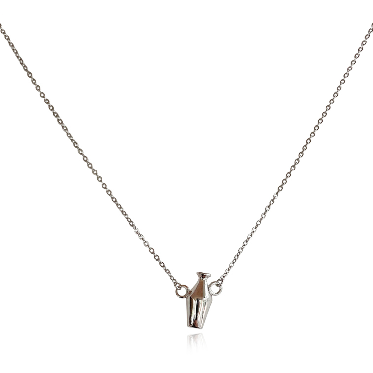 Contemporary, artsy and unique. Introducing Verseau Artisan Amphora Pendant Necklace - an artisan crafted art deco style pendant neckpiece for lovers of art, sculptures, and uniqueness. This design features an amphora shaped pendant attached to a fine silver necklace. This neckpiece is made in solid sterling silver with rhodium plating to ensure hypoallergenic wear with an extra anti-tarnish protection. This neckpiece is 46cm including a 5cm adjustable link for a flexible fitting. An adorable, chic and sleek piece perfect for modern, creative, artsy, simple, minimalist, necklace layering, smart casual, casual, everyday styles and more. Also suitable for unisex wear. Hypoallergenic, nickel, cadmium and lead free.