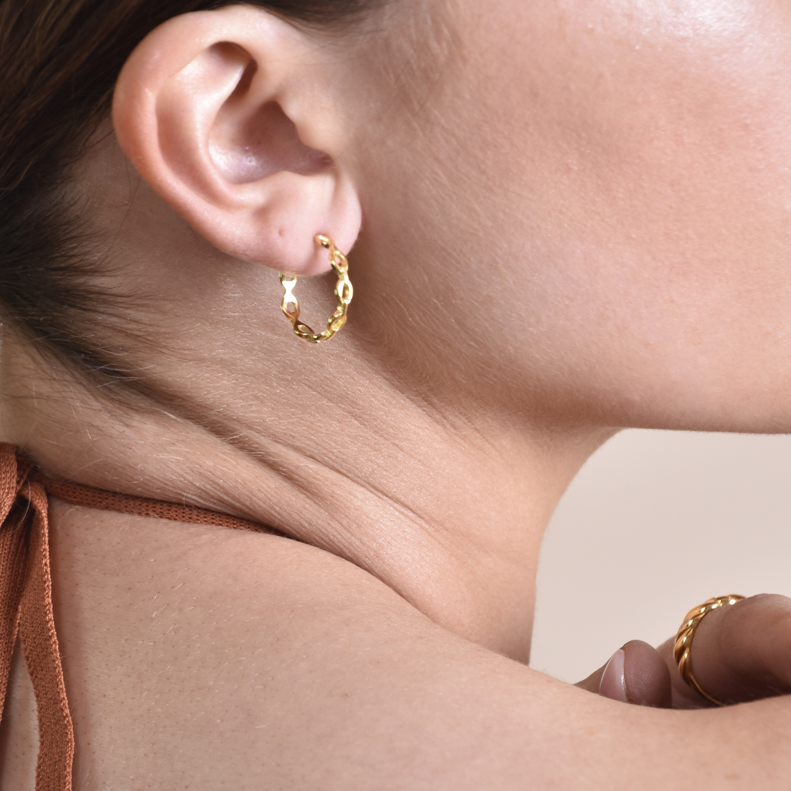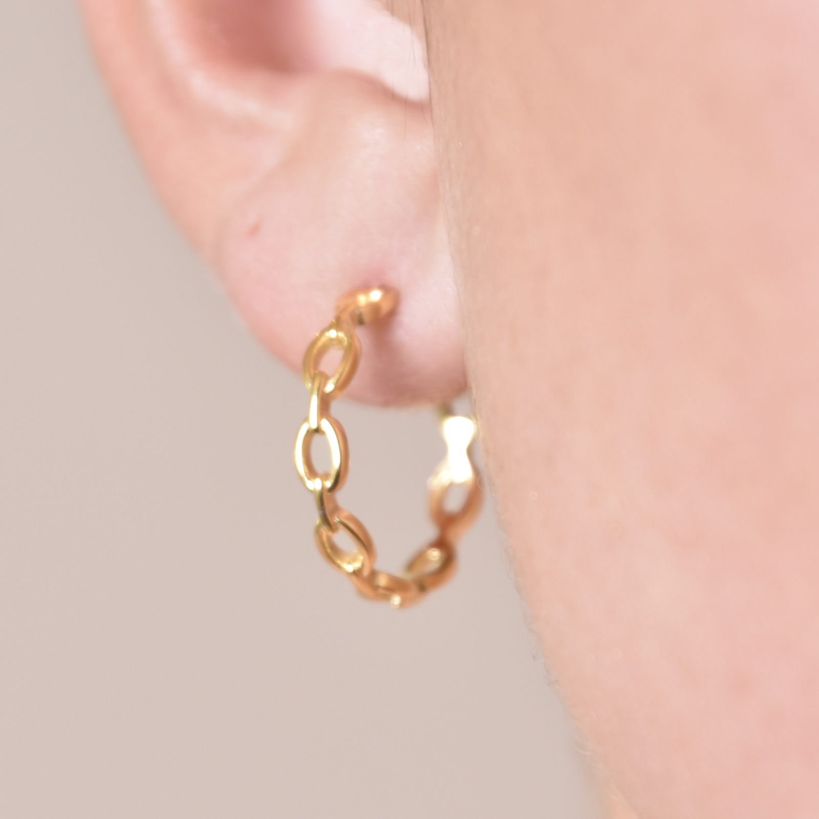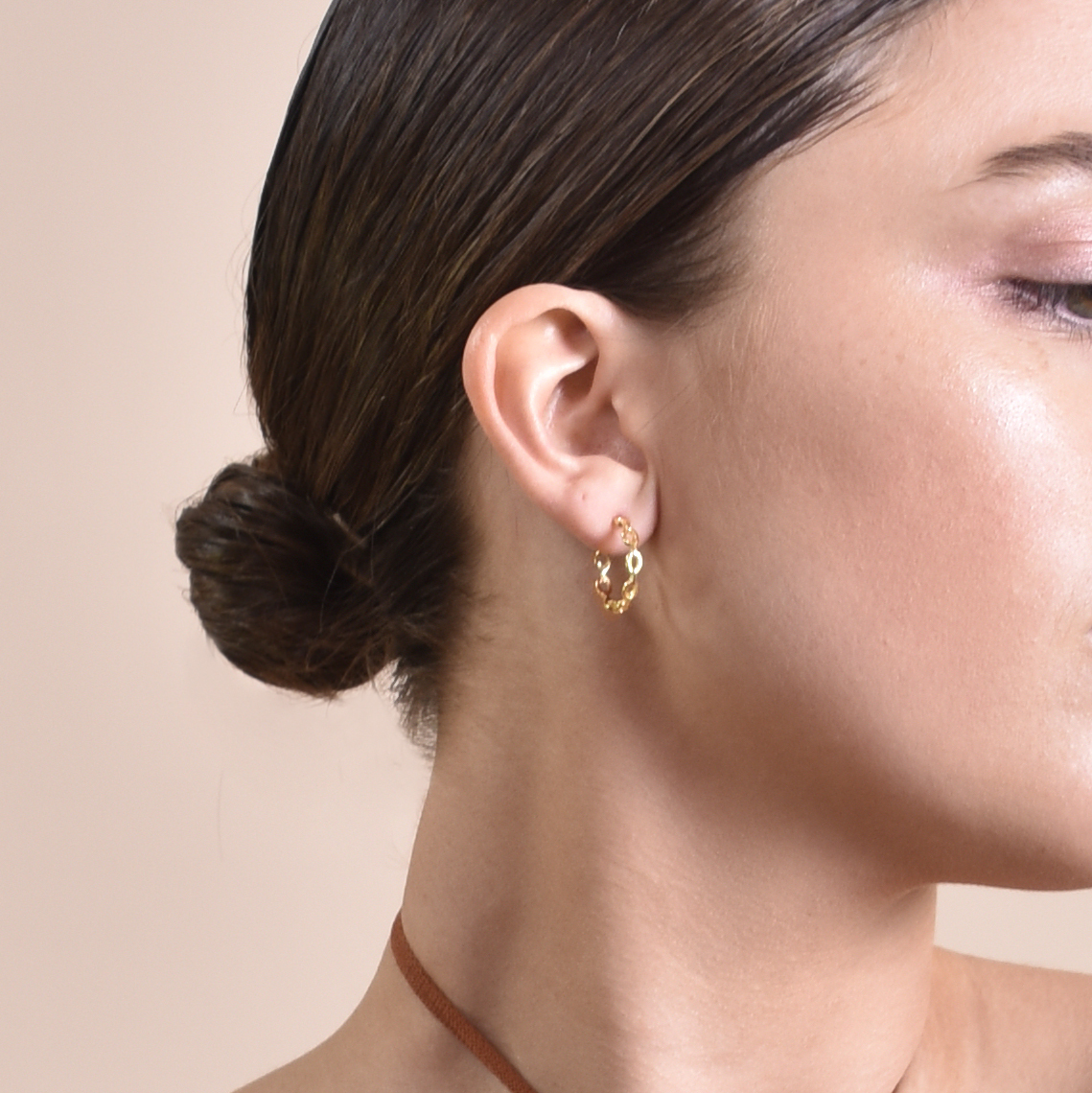 Simple, chic and versatile for styling. Introducing Vida Minimalist C Chain Earrings (Gold Vermeil) - a fine link chain style ear love for a subtle style delight. This design features link chain C hoops in a comfortable size. The earrings are made in solid sterling silver with 2.5 microns of 18K gold plating (to Gold Vermeil Jewellery Standards) and smooth polishing. They are also of a comfortable weight for wearing all day. Perfect for modern, retro, chic, punk, smart casual, earring layering, casual, everyday styles and more. Hypoallergenic, nickel, cadmium and lead free.