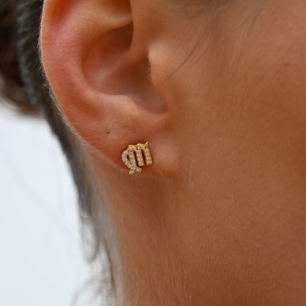 Virgo Artisan Zirconia Pavé Stud Earrings (Gold)