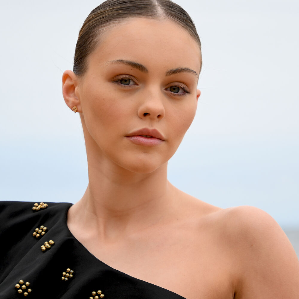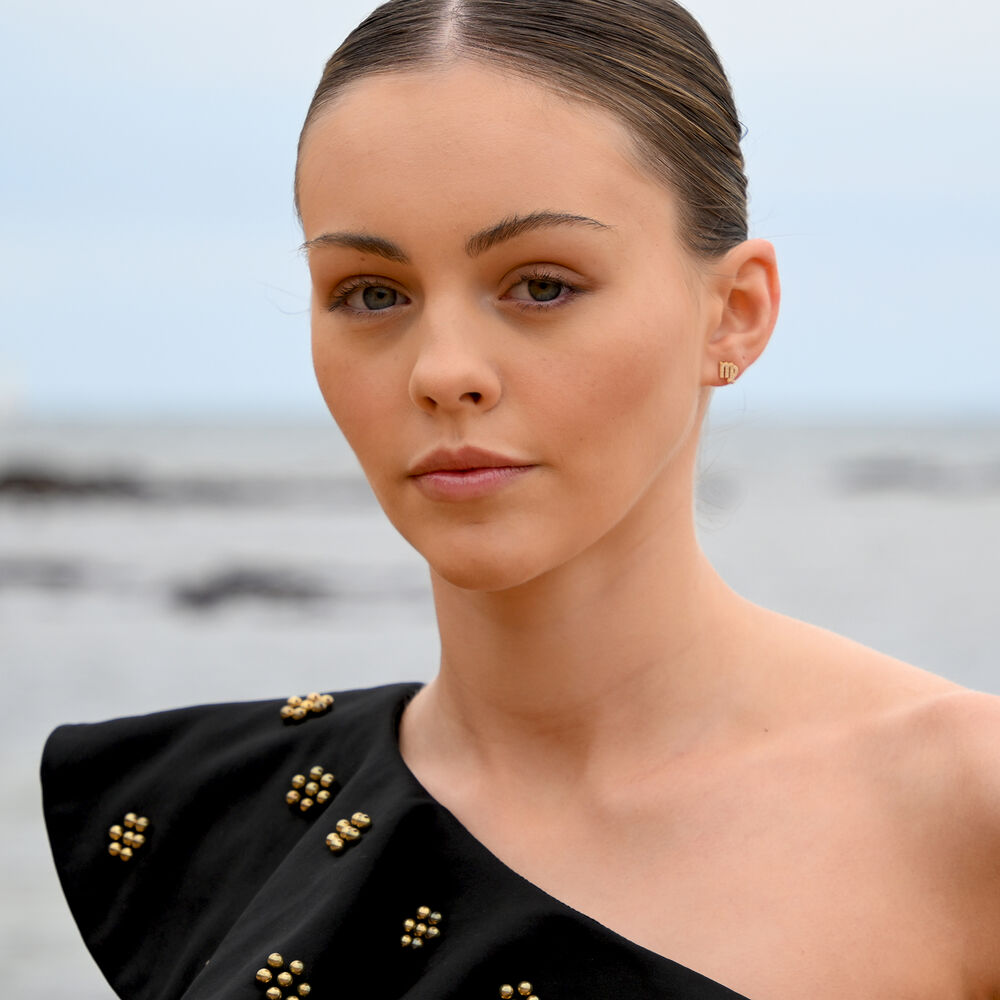 Each earring is meticulously crafted from solid sterling silver and finished with 2 microns of thick 18K gold plating, offering exceptional durability and a rich, luminous finish. The surface is set with Australian cubic zirconia pavé, creating a delicate constellation of light that catches and reflects with every movement.