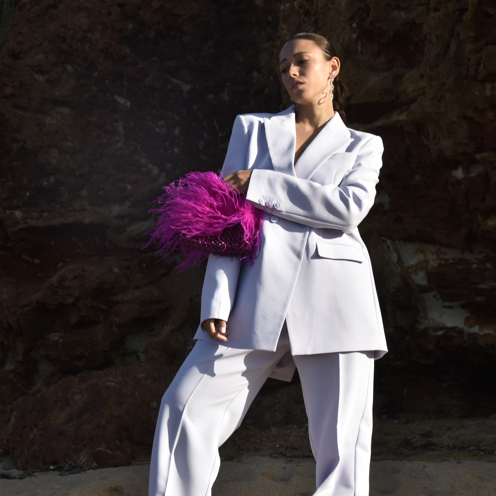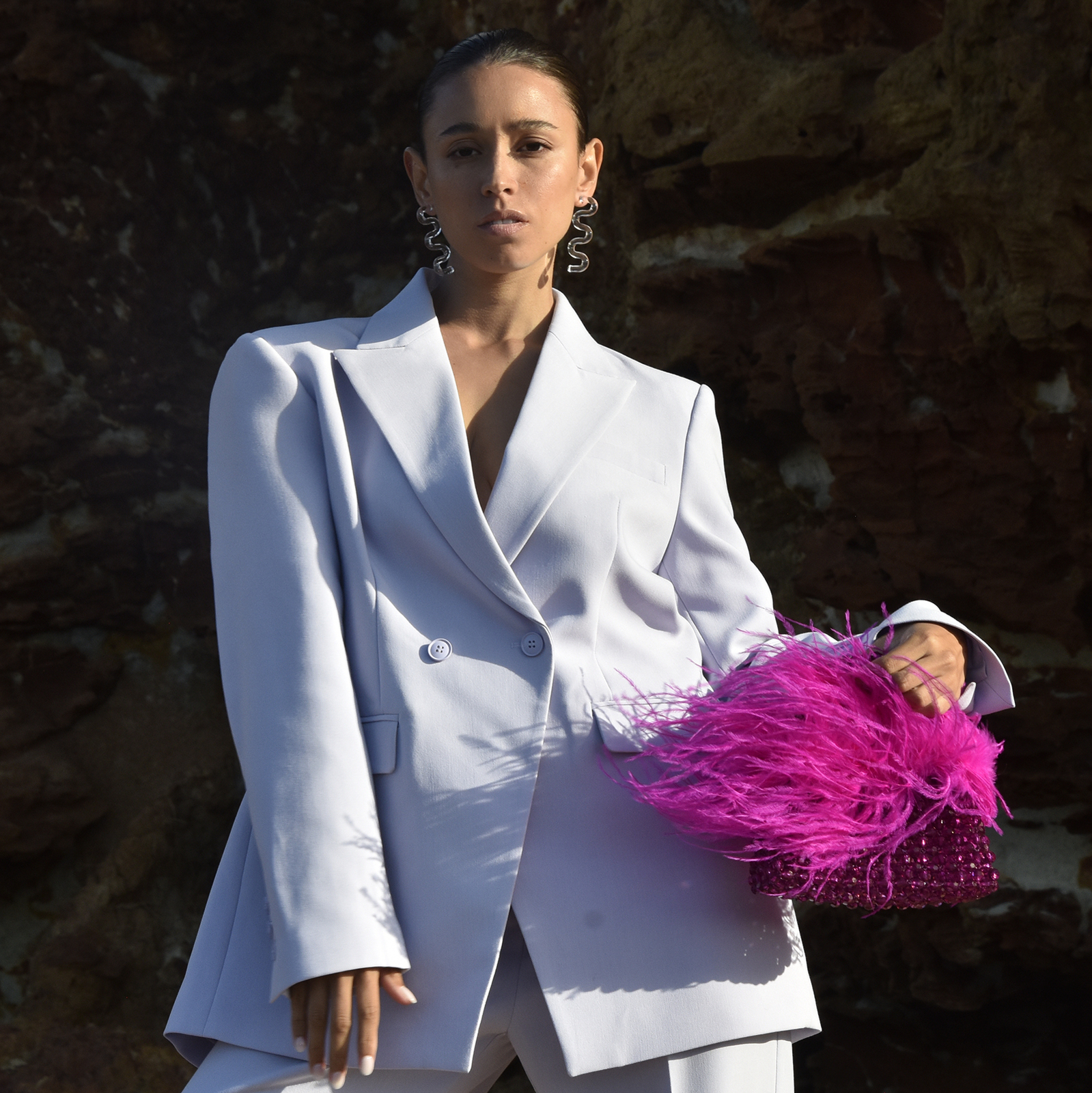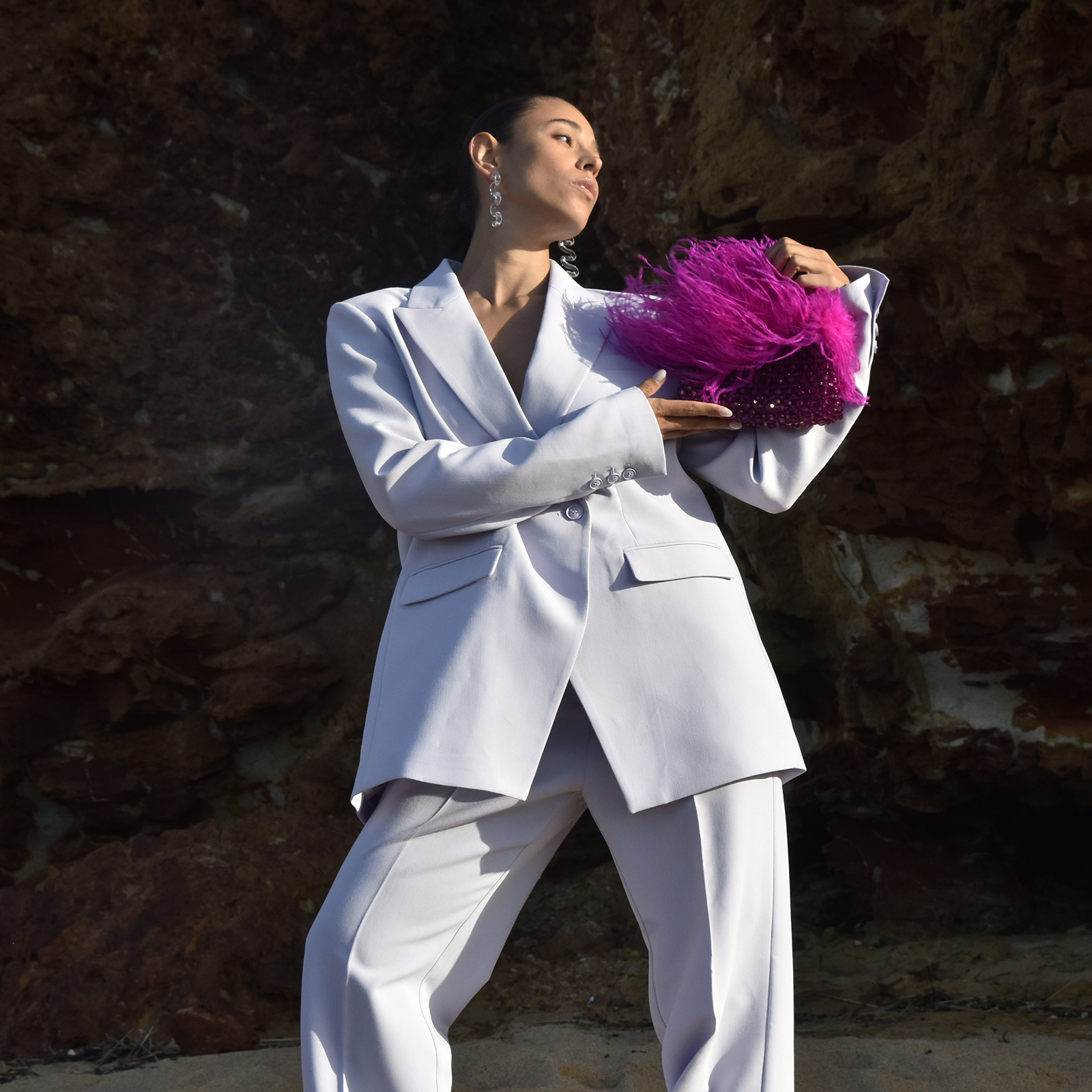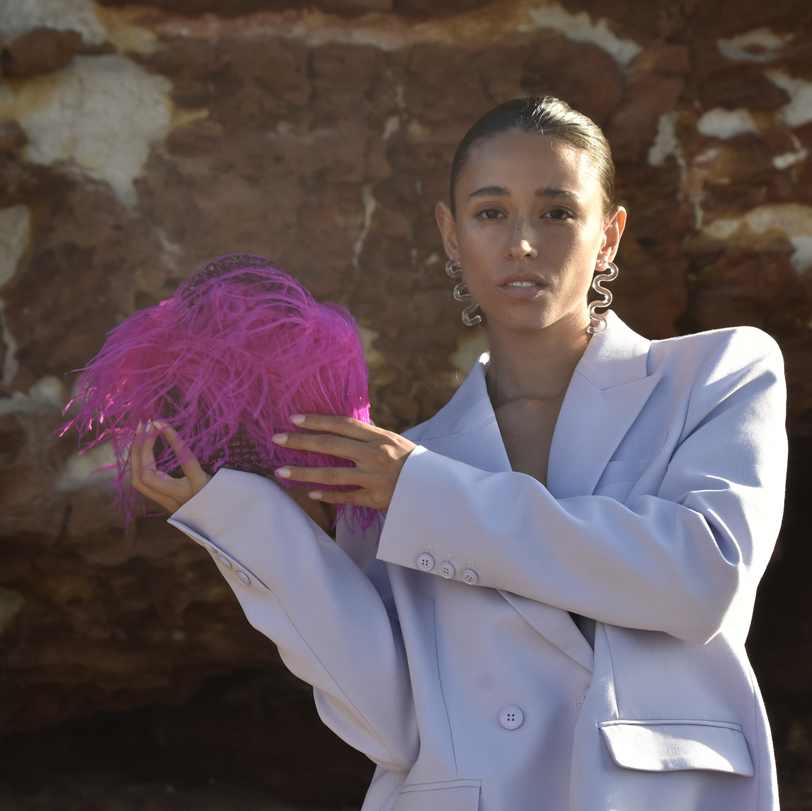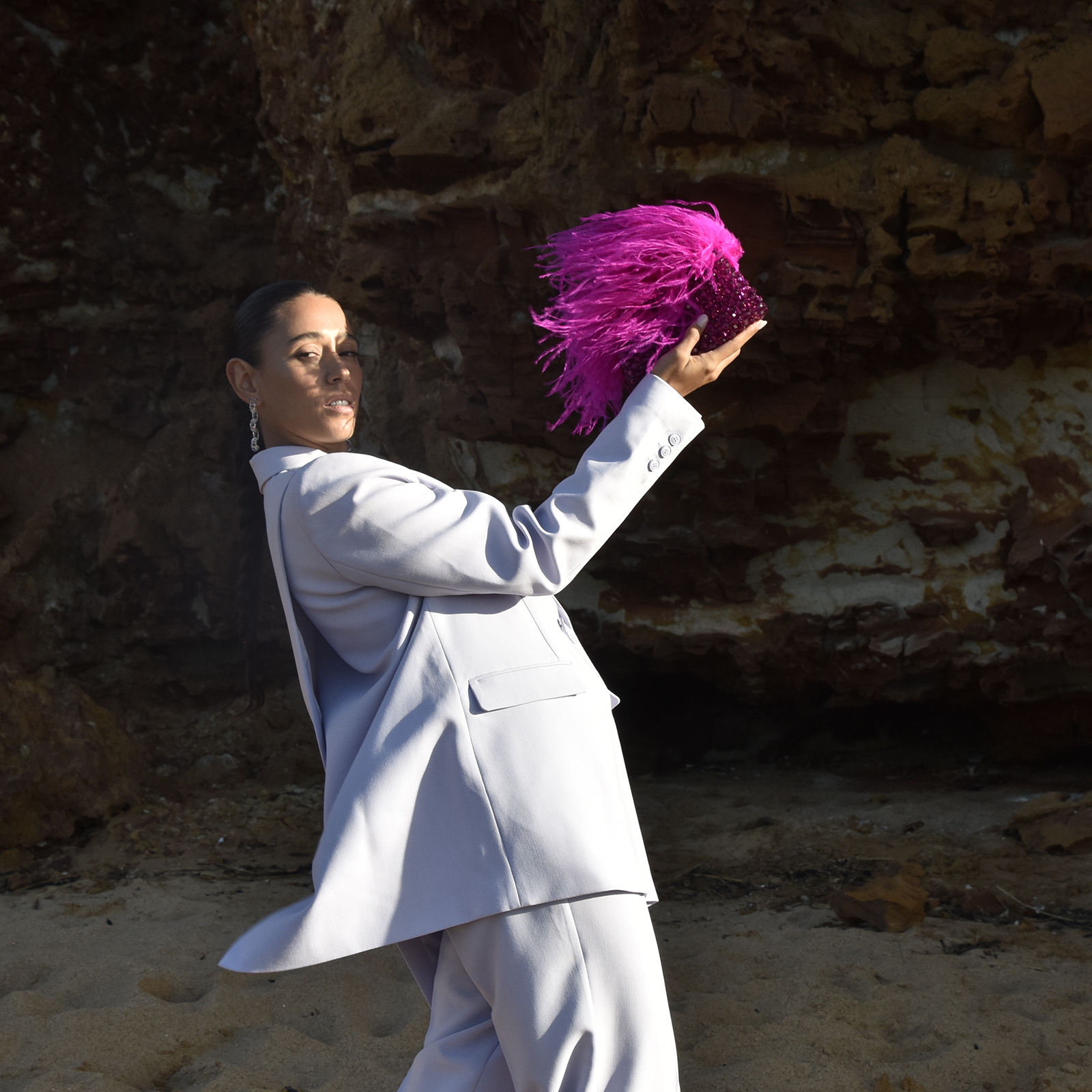 Add your splash of colour to the world. Introducing Vivant Beaded Ostrich Fur Bag (Vivid Magenta) - a flamboyant modern handbag with an intense burst of brightness. This design features a handmade beaded bag in vivid magenta topped with ostrich fur, embracing movement and bounciness. The beaded bag is 18.5cm in length and 21.5cm in height (including the handle). Pair it with garments of contrasting or complimentary colours or whatever makes your fashion spirit fly.