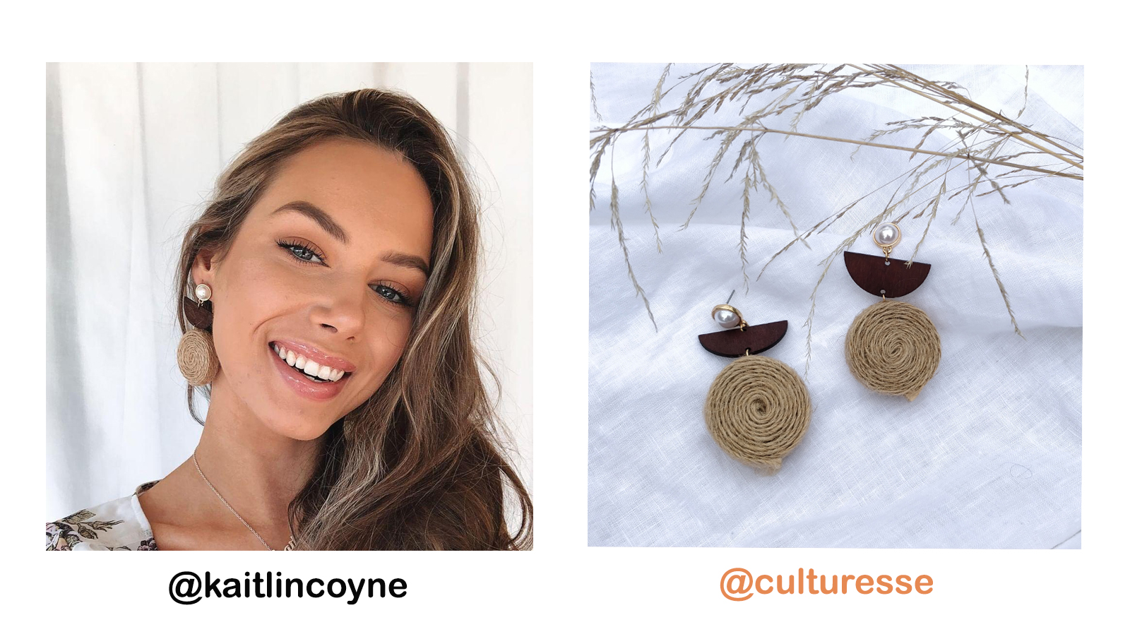 Based in lovely Sunshine Coast, Queensland, Kaitlin Coyne's beach fashion style has surely caught our eyes. When it comes to earrings, Kaitlin prefers something that shows her free spirit and her passion for the nature. We love how she styled this earthy vibe pair of earrings with neutral theme makeup and a heart-melting smile. You can also achieve this look with our Mya Rattan Knit Ethical Earrings. Inspired by the autumn fields in Tuscany Italy, this pair of Mya rattan knit earrings embrace nature, earthiness and a free spirit. Perfect for a modern and simple statement (click image to view earrings).