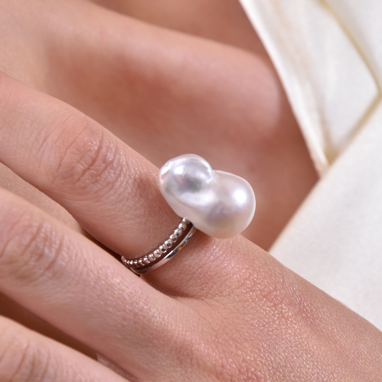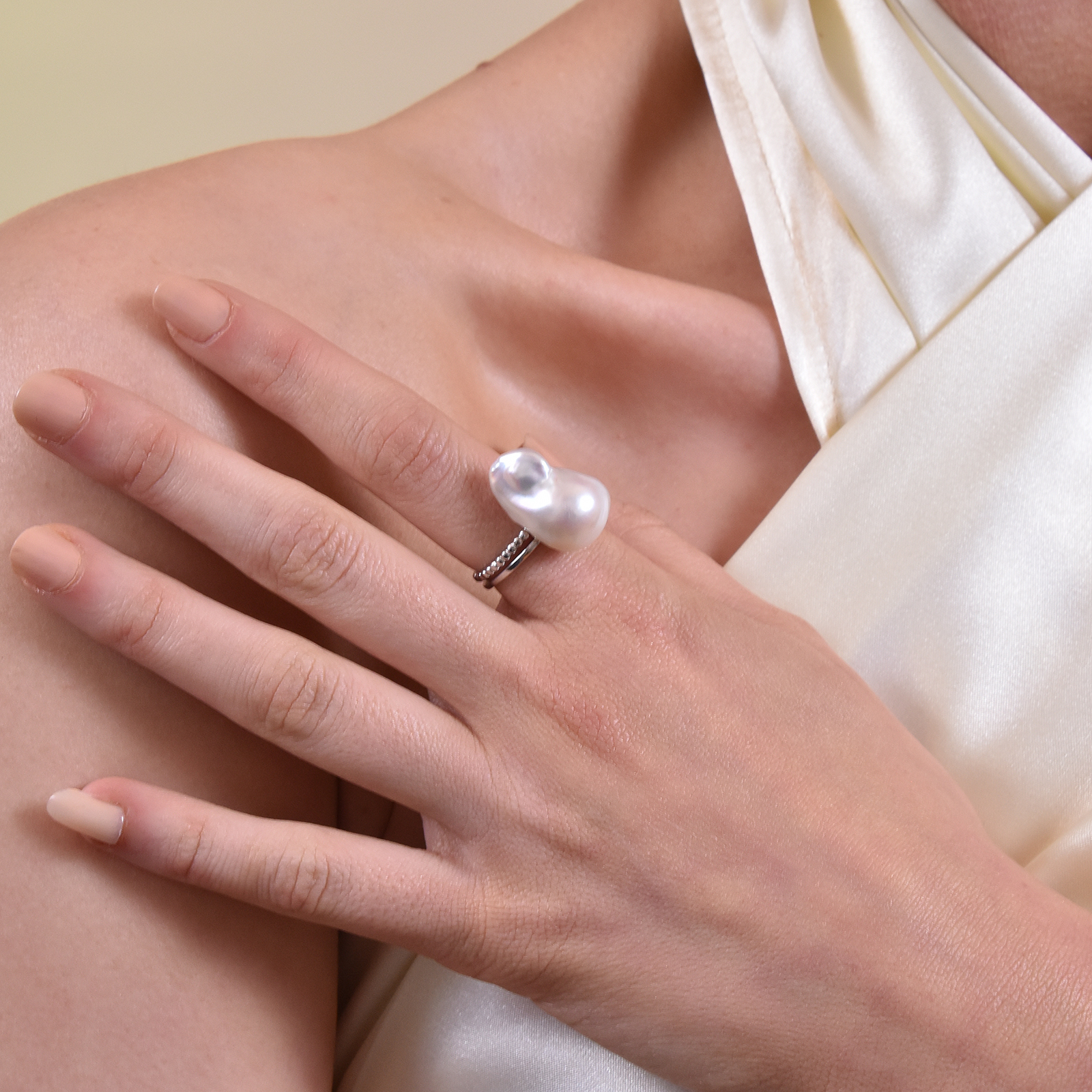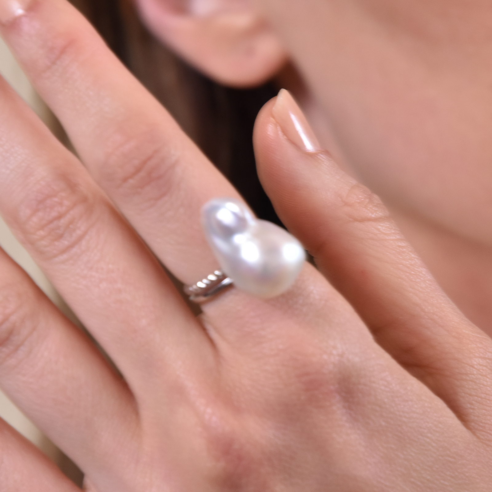 Sold OutVintage, modern, high fashion baroque pearl love for your fingers Featuring handpicked Great Southern Ocean baroque pearls (natural pearl) 100% sterling silver + Tarnish resisting Fully adjustable Perfect for feminine, vintage, coastal, modern, artsy and everyday wear