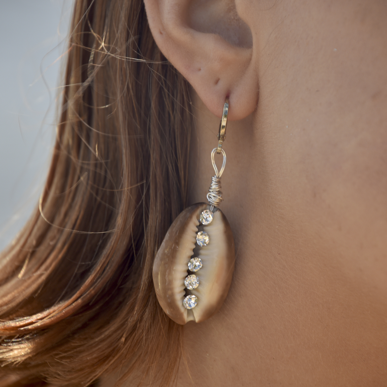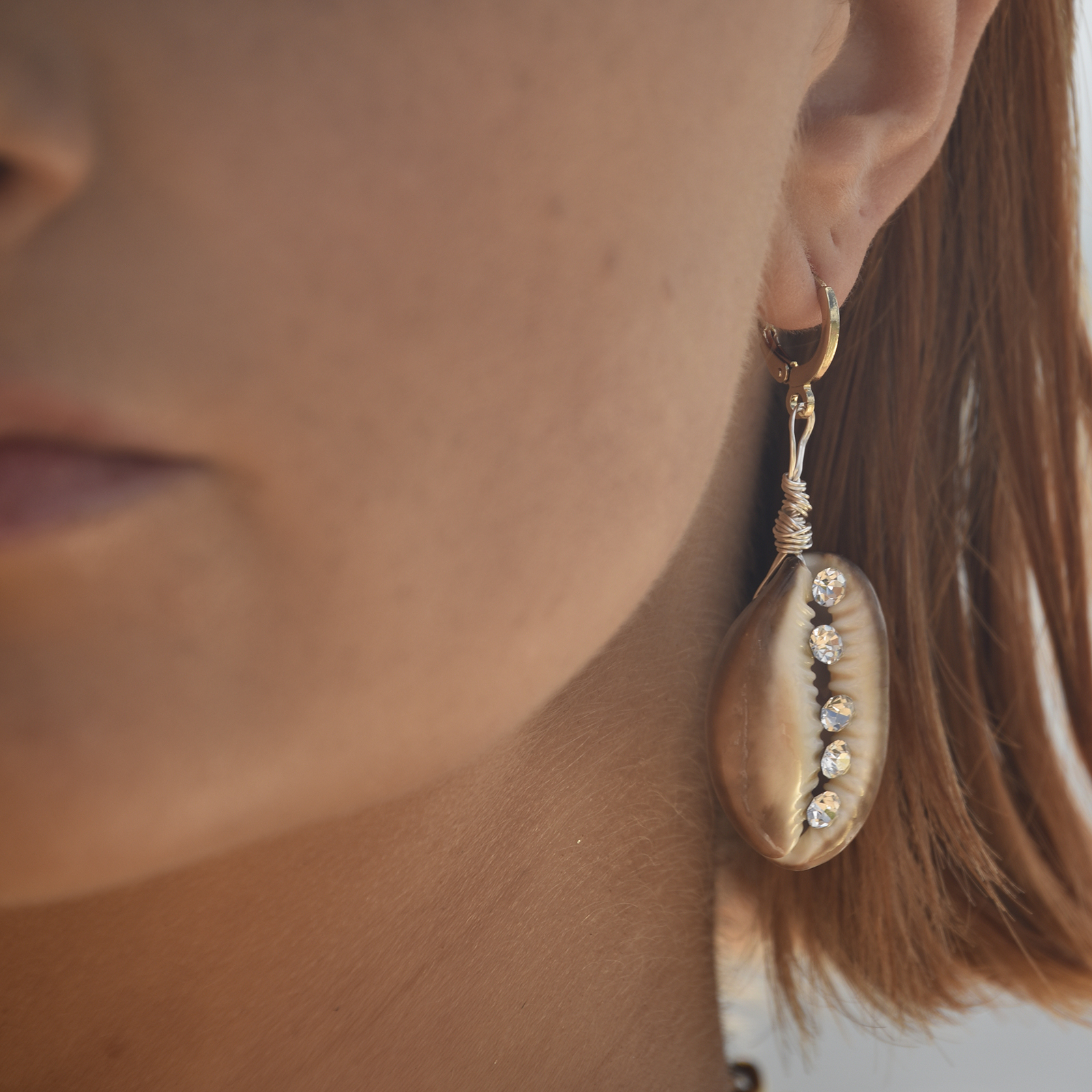 | Made from: | 14K Gold PlatingCrystalPolished natural shellsStainless Steel |
