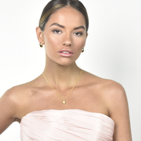 This necklace is 45cm long. Please kindly note that the position of the necklace sitting on your neck can vary from individual to individual depending on your top size. Model is a size 8.